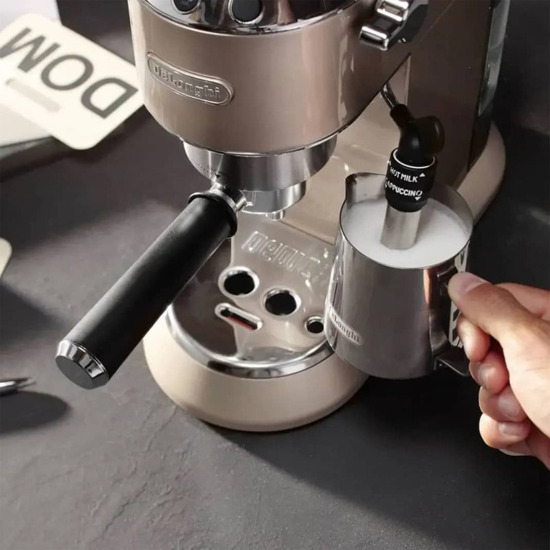 قهوه ساز دلونگی با بهرهمندی از موتور قدرتمند ۱۳۰۰ واتی و فشار بخار ۱۵ بار انتخابی کاملاً ایدهآل برای مصارف خانگی به شمار میرود و قادر است نیاز تمامی افراد یک خانواده را برای تهیهی انواع نوشیدنیها بر پایهی قهوه برطرف کند. یکی از مهمترین قابلیتهای این دستگاه سیستم ترموبلاک آن است که به شما کمک میکند نوشیدنی خود را در دمای دلخواه آماده کنید. این سیستم با افزایش دمای مخزن در کوتاهترین زمان ممکن باعث نفوذ بخار درون ذرات قهوه و خوشطعم و خوشعطرتر شدن آن میشود. علاوه بر این با کمک پیچر و نازل بخار اسپرسو ساز دلونگی مدل ec785.bg هم امکان تهیهی فوم شیر برای کاپوچینو یا لاته هم وجود دارد. برای این کار بعد از ریختن شیر درون پیچر باید دسته بخار را درون پیچر نزدیک به ته لیوان قرار دهید تا شیر به دمای مناسب برسد. اسپرسوساز دلونگی مدل ec785 مجهز به سیستم خاموششدن خودکار است؛ نتیجه اینکه اگر به کاری مشغول شدید و حواستان به خاموش کردن دستگاه نبود جای هیچگونه نگرانی نیست؛ چرا که این قابلیت بعد از چند دقیقه استفاده، دستگاه را به صورت خودکار خاموش میکند و به این ترتیب میزان مصرف برق شما هم پایین میآید. علاوه بر این ایمنی بیشتری در مقایسه با سایر دستگاههای موجود در بازار دارد و مانع از بروز ضررهای احتمالی میشود.