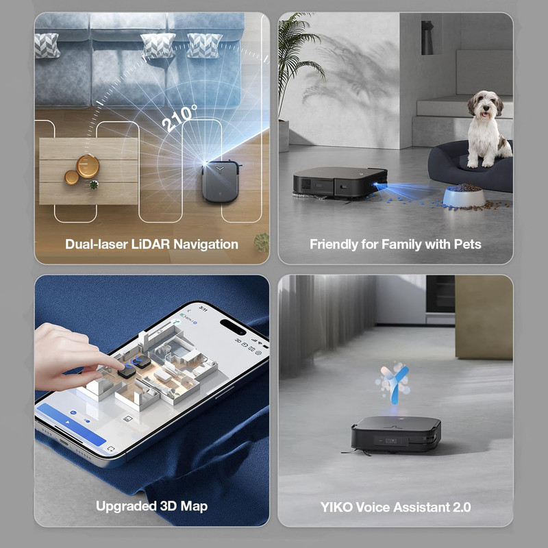 | سایر توضیحات | قدرت مکش : 8000 پاویژگیهای استیشن :ایستگاه همه کاره تمام اتوماتیکشستشو خودکارموپ پدها با آب گرمخشک کردن موپ پد با هوای گرمظرفیت مخزن آب تمیز ( داخل استیشن) : 4 لیترظرفیت مخزن آب تمیز ( داخل استیشن) : 3.5 لیترظرفیت کیسه گردوخاک : 3 لیتر مخزن آب : 180 میلی لیترمخزن گردوخاک : 150 میلی لیترنقشه برداری سه بعدینقشه برداری چند سطحی ( 3 طبقه )LiDAR لیزری دوگانهvideo maneger : دارد ( به کمک دوربین حرکات ربات قابل مشاهده است )سنسور تشخیص فرشسنسور تشخیص لبهقادر است از پله 2 سانتی متری عبورکندمجهز به فناوری اولتراسونیک ( بلندکردن موپ پدها به اندازه 15 میلی متر)مجهز به فناوری AIVI 3D 2.0 و TrueMapping 3.0 برای شناخت دقیق موانع و مسیرحیوانات خانگی را در خانه شناسایی می کند و می تواند بهترین راه حل تمیز کردن را توصیه کند.ظرفیت باتری : 6400 میلی آمپردستیار صوتی |