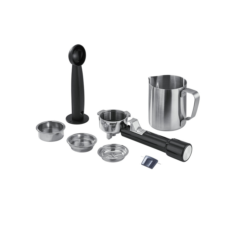 | سایر اقلام همراه محصول | ظرف تهیه فوم شیر استیل(پیچر)صافی تک شات،دبل شات،صافی پادتمپر همراهسوزن همراه جهت تمیز کاری صافی و نازل بخار |