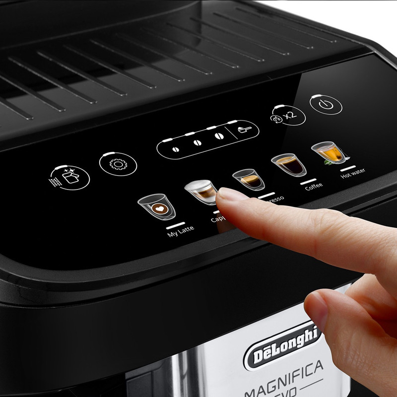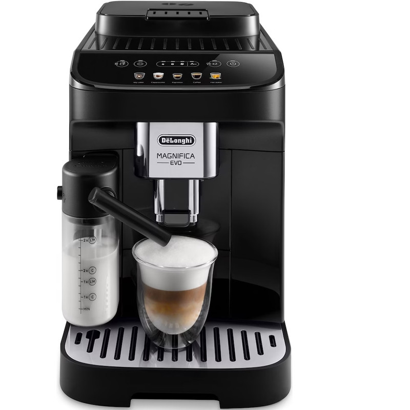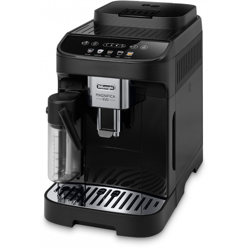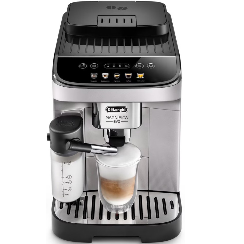 دلونگی ECAM 290.61 Magnifica Evo برنده جایزه طراحی سال 2022، اسپرسوی ایتالیایی عالی و طیف وسیعی از نوشیدنیهای قهوه و شیر دیگر را با 5 دستور غذای تک لمسی که از طریق نمایشگر رنگی در دسترس است، برای شما سرو میکند. به لطف سیستم انحصاری LatteCrema بافت صاف ابریشمی کف شیر غلیظ و خامه ای قابل تهیه است. آسیاب 13 حالته در کنار فشار بخار 15 بار این دستگاه اسپرسوی بی نظیری با یک دکمه به صورت اتوماتیک برای شما آماده میکند. مخزن آب اسن دستگاه 1.8 لیتری می باشد.اکثر دستگاه های تمام اتوماتیک به دلیل دارا بودن سه مخزن مجزا آب، شیر و آسیاب قهوه و همچنین تولید فشار بخار آب بالا و مکانیزم ترموبلاک باید دارای توان زیادی باشند. اسپرسوساز 290.61 هم یکی از این موارد بوده که مهندسین دلونگی توان 1450 وات را برای آن طراحی کرده اند. این میزان توان باعث به جوش آمدن سریع آب برای تهیه عملیات قهوه و همچنین تولید فشار بخار بالا در سریع ترین زمان ممکن می شود.