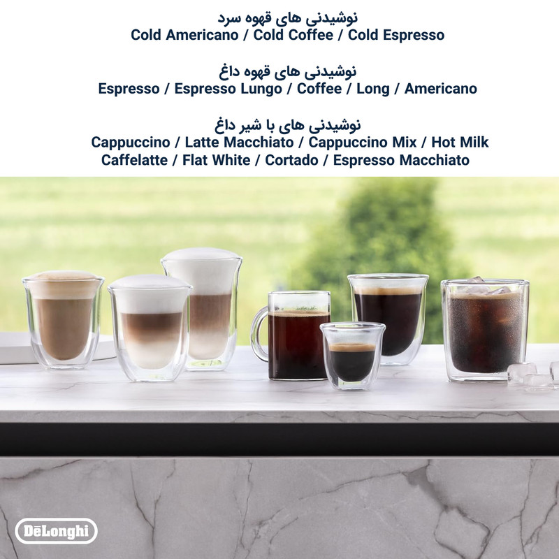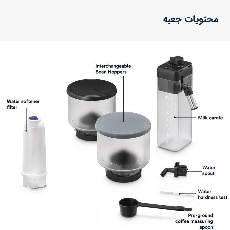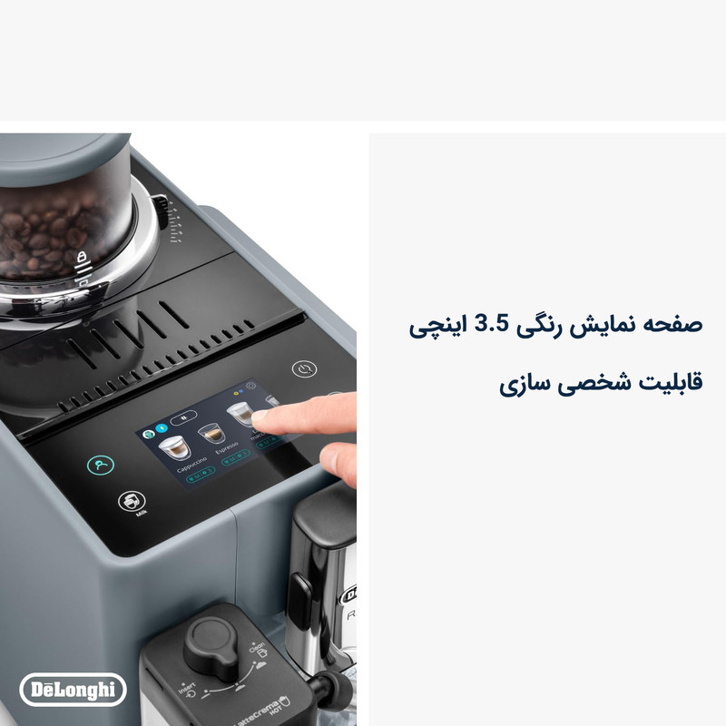 | سایر توضیحات | تنظیم آسیاب در 14 حالت / دارای 2 عدد مخزن شیر برای سرو نوشیدنیهای گرم و سرد / صفحه نمایش: رنگی 3.5 اینچی TFT / سیستم LatteCrema / امکان شخصی سازی منو |