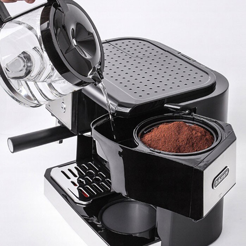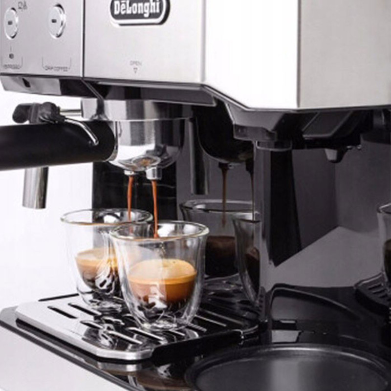 اسپرسوساز «دلونگی» (Delonghi) مدل «BCO421» دستگاهی باکیفیت است. ظاهر این دستگاه زیباست و بدنهی آن از استیل ساخته شده است. این دستگاه امکان تهیهی قهوه فرانسه، کاپوچینو و اسپرسو را دارد. برای تهیهی قهوه فرانسه یک مخزن قهوه و آب مجزا در قسمت چپ دستگاه وجود دارد. داخل مخزن قهوهی فرانسه یک فیلتر دائمی وجود دارد و بهراحتی میتوان آن را با استفاده از دستهاش خارج کرد. امکان تهیهی 10 فنجان قهوه فرانسه در این دستگاه فراهم شده است. دستگاه دارای دو نازل خروجی برای اسپرسو است و در تمپر دستگاه امکان ریختن پودر یا گذاشتن پد مخصوص وجود دارد. این دستگاه دارای صفحهی گرمنگهدار برای 10 عدد فنجان است و در قسمت زیر نازل اسپرسو، سینی چکهگیر وجود دارد؛ همچنین این دستگاه امکان تهیهی کفشیر و آبجوش نیز دارد. این دستگاه به صورت مجموع عملکرد 1750 وات توان مصرفی دارد که شامل 800 وات و 900 وات برای قسمت اسپرسو ساز و قهوه فرانسه و همچنین پرت انرژی دستگاه است. دلونگی یکی از بهترین سازندگان این دسته از محصولات است. کیفیت محصولات دلونگی همراه با خدمات پس از فروش قوی آن، تضمینشده است.
