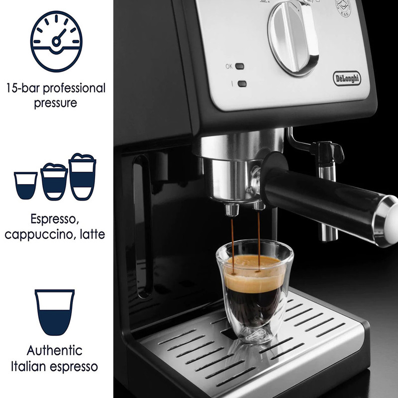 اسپرسو ساز دلونگی مدل ECP33.21 – قهوهای حرفهای در خانه شما اگر به دنبال یک دستگاه خوشساخت، خوشقیمت و در عین حال کارآمد برای تهیه اسپرسو و نوشیدنیهای بر پایه قهوه در خانه هستید، دلونگی مدل ECP33.21 انتخابی فوقالعاده خواهد بود. این اسپرسو ساز نیمهحرفهای با طراحی زیبا، جمعوجور و عملکرد مطمئن، تجربهای نزدیک به دستگاههای حرفهای را در اختیار شما میگذارد. طراحی کلاسیک و بدنه مقاوم بدنهی دستگاه ترکیبی از فلز و پلاستیک با کیفیت است که ضمن زیبایی، دوام بالایی نیز دارد. طراحی آن ساده اما مدرن است و بهراحتی با دکور آشپزخانه شما هماهنگ میشود. مخزن آب 1.1 لیتری شفاف آن بهراحتی قابل جدا شدن و پر کردن است. عملکرد قدرتمند و ساده ECP33.21 به یک پمپ فشار 15 بار مجهز است که باعث عصارهگیری قوی و طعمی غنی از قهوه میشود. شما میتوانید از پودر قهوه یا پدهای E.S.E استفاده کنید، که انعطافپذیری خوبی برای کاربران با سلیقههای مختلف فراهم میکند. سیستم بخار حرفهای برای فوم شیر با نازل بخار قابل تنظیم این دستگاه میتوانید فوم شیر دلخواه خود را برای تهیه کاپوچینو یا لاته آماده کنید. این نازل به شما اجازه میدهد میزان بخار را کنترل کرده و با کمی تمرین، فومی مخملی و حرفهای درست کنید. ویژگیهای کلیدی: فشار 15 بار برای عصارهگیری قوی قابلیت استفاده از پودر قهوه و پد نازل بخار قابل تنظیم برای فوم شیر سینی چکهگیر جداشدنی برای لیوانهای بلند سیستم گرم نگهدارنده فنجان طراحی کمصدا و مناسب فضای کوچک دلونگی ECP33.21 یک گزینهی عالی برای کسانی است که میخواهند طعم قهوه واقعی را با قیمتی منطقی در خانه تجربه کنند، بدون نیاز به دستگاههای صنعتی یا پیچیده.