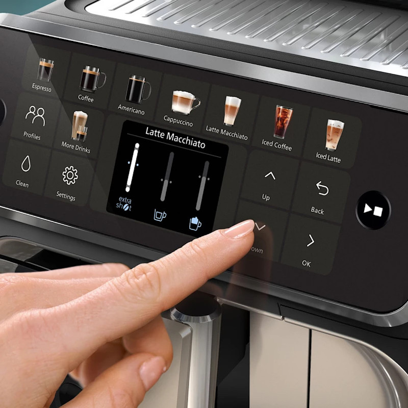 | سایر توضیحات | قابلیت تنظیم آسیاب در 12 حالت / تنظیمات قدرت عطر و غلظت قهوه در 5 سطح متفاوت / تنظیم دما در سه سطح / قابلیت تنظیم و شخصی سازی برای 5 نفر / فیلتر AquaClean / قابلیت تهیه فوم شیر با فناوری LatteGo / قابلیت سفارشی سازی و ذخیره نوشیدنی / فناوری SilentBrew برای کاهش صدای دستگاه / قابلیت QuickStart |