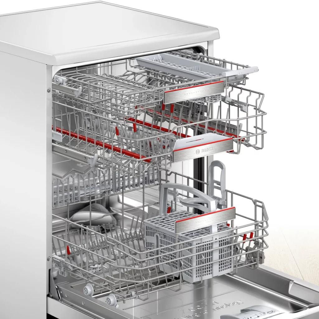 ماشین ظرفشویی بوش مدل SMS8ZDW86M از سری ۸ بوش، با طراحی ایستاده و پهنای ۶۰ سانتیمتر، گزینهای ایدهآل برای خانوادههای متوسط تا بزرگ است. این دستگاه با ظرفیت ۱۳ نفره، امکان شستوشوی حجم بالای ظروف را در هر بار استفاده فراهم میکند. با مصرف آب تنها ۱۰.۴ لیتر در برنامه Eco، این مدل در دستهبندی دستگاههای کممصرف قرار دارد و به حفظ منابع طبیعی کمک میکند. فناوری خشککن Zeolith نیز با استفاده از مواد معدنی طبیعی، ظروف را بهطور مؤثر و سریع خشک میکند، حتی پلاستیکها را بدون باقیماندن قطرهای آب. اتصال هوشمند Home Connect به شما این امکان را میدهد که از طریق اپلیکیشن، وضعیت دستگاه را بررسی کرده، برنامهها را تنظیم و حتی از راه دور آن را کنترل کنید. این ویژگی برای کاربرانی که به تکنولوژیهای مدرن علاقهمندند، بسیار جذاب است. از دیگر ویژگیهای این مدل میتوان به سیستم AquaStop برای جلوگیری از نشت آب، موتور EcoSilence Drive برای عملکرد بیصدا و مصرف انرژی بهینه، و برنامههای متنوع شستوشو مانند Intensive، Quick L و HygienePlus اشاره کرد که نیازهای مختلف شستوشو را برآورده میسازد. با طراحی شیک و بدنه سفید، این ماشین ظرفشویی بهراحتی با دکوراسیونهای مختلف هماهنگ میشود و بهعنوان یک ابزار کارآمد و زیبا در آشپزخانه شما عمل میکند.