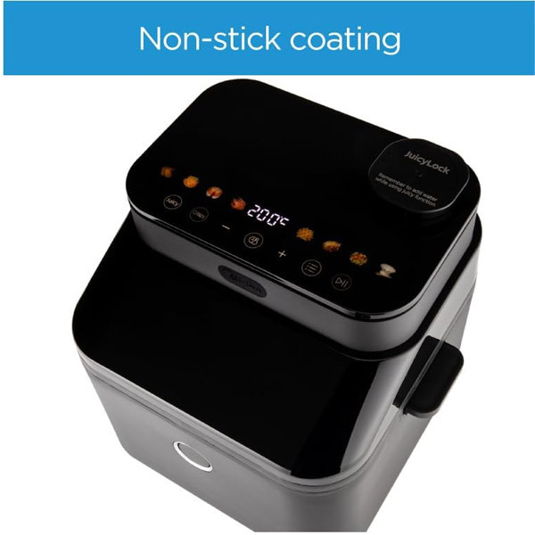 به لطف تکنولوژی هوای سریع DUALCYCLONE با جریان هوای جابجایی بهینه، هوای گرم سریع ایجاد می کند تا غذا را سریعتر و یکنواختتر بپزد و بهترین حالت کریسپی را که میل دارید ارائه دهد. با کمک تایمر دقیق و کنترل دما ،تنظیم دمای دقیق تا 200 درجه سانتیگراد و تایمر تا 60 دقیقه برای غذاهای لذیذ مختلف که دوست دارید فراهم میکند امکانات بی پایان سرخ کن بدون روغن چند منظوره ما می تواند پخت، سرخ کردن، آهسته پز، کباب کردن، برشته کردن و حتی تفت دادن را انجام دهد! این به شما این امکان را می دهد که انواع بی پایانی از غذا های سالم را برای خود و خانواده تان تهیه کنید که حاوی 80 درصد چربی کمتری نسبت به نسخه های سرخ شده سنتی آنها باشد. تمیز کردن آسان، طراحی نچسب هدف ما این است که آشپزی سالم نه تنها سریع، بلکه ساده باشد. سبد جدا شونده با مواد نچسب کیفیت بالا پوشانده شده است تا تمیز کردن آن ساده و بدون دردسر باشد. همچنین 100% قابل شستشو در ماشین ظرفشویی است! نمایشگر دیجیتال هوشمند سرخکن بدون روغن مدیا طوری طراحی شده است که استفاده از آن آسان و شهودی باشد. با استفاده از کنترل LCD دیجیتال 1 از 8 حالت پخت از پیش تعیین شده را انتخاب کنید یا از کنترل مستقل دما و تایمر برای داشتن انعطاف کامل در زمان پخت و گرما استفاده کنید. ظرفیت بزرگ این یک افزودنی عالی برای آشپزخانه شما است. این سرخکن بدون روغن چند کاره دارای ظرفیت 7.3 لیتر است. کف سبد سرخ کردنی با سوراخ هایی پوشانده شده است تا چربی تولید شده در طول فرآیند پخت در کف دستگاه جمع آوری شود. سبد سرخ کردنی سایز خانوادگی طرفین سبد سرخ کردنی مجهز به یک توری تهویه با طراحی خاص است، که به هوای فوق گرم اجازه می دهد تا با سرعت بالا از آن عبور کند و یک اثر سیکلونی ایجاد کند که غذا را به سرعت و کارآمد می پزد. طراحی فشرده شیک این سرخ کن بدون روغن به گونه ای طراحی شده است که هم جمع و جور و کاربردی باشد و هم بی انتها باشد. درب و دسته کرومی برس خورده با روکش بیرونی براق مشکی، طراحی مدرن و لوکسی را ایجاد می کند که در هر آشپزخانه ای عالی به نظر می رسد.