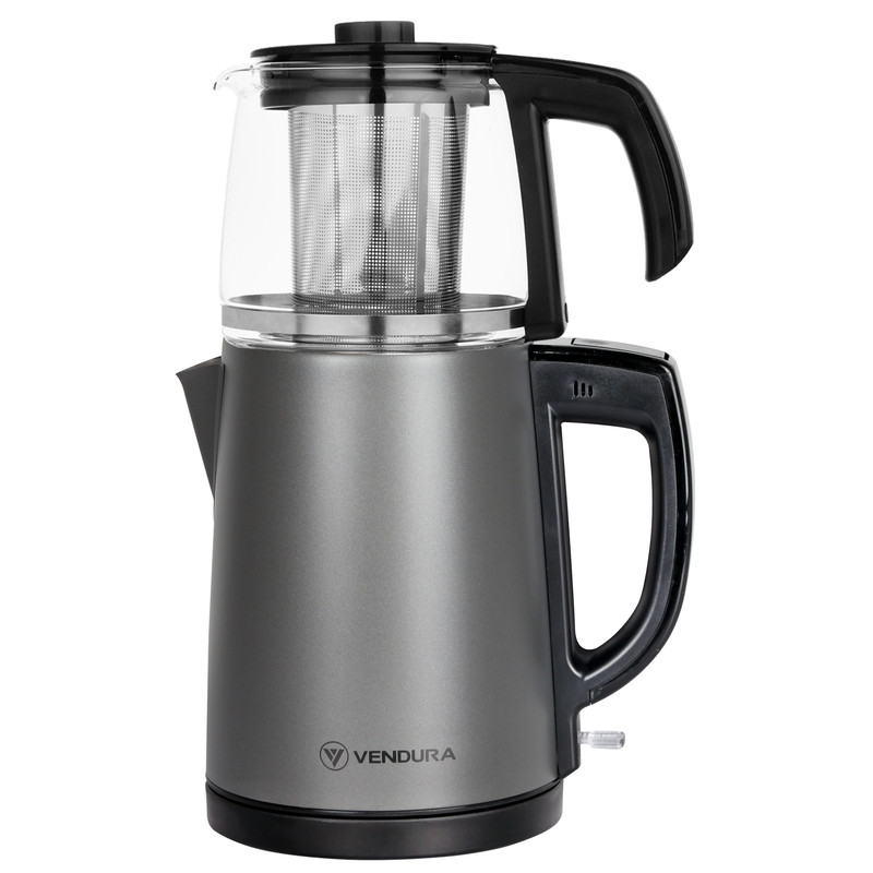 اگر به نوشیدن چای علاقه دارید باید چای ساز تهیه کنید. چای ساز وندورا مدل TF8210 یک چای ساز با کیفیت ساخت ترکیه است. ظرفیت کتری آب این مدل 1.8 لیتر و قوری 1 لیتر است. برای کتری از جنس استیل و قوری شیشه ای استفاده شده است. قوری و کتری این مدل روی هم قرار گرفته و این ویژگی باعث شده تا این چایساز فضای کمتری را اشغال کند. توان صرفی چایساز 1650 وات بوده که این میزان برای مصارف خانگی مناسب است. دستگیرهای که برای قوری و کتری تعبیه شده عایق حرارت بوده و باعث شده تا استفاده از این چایساز آسان باشد.