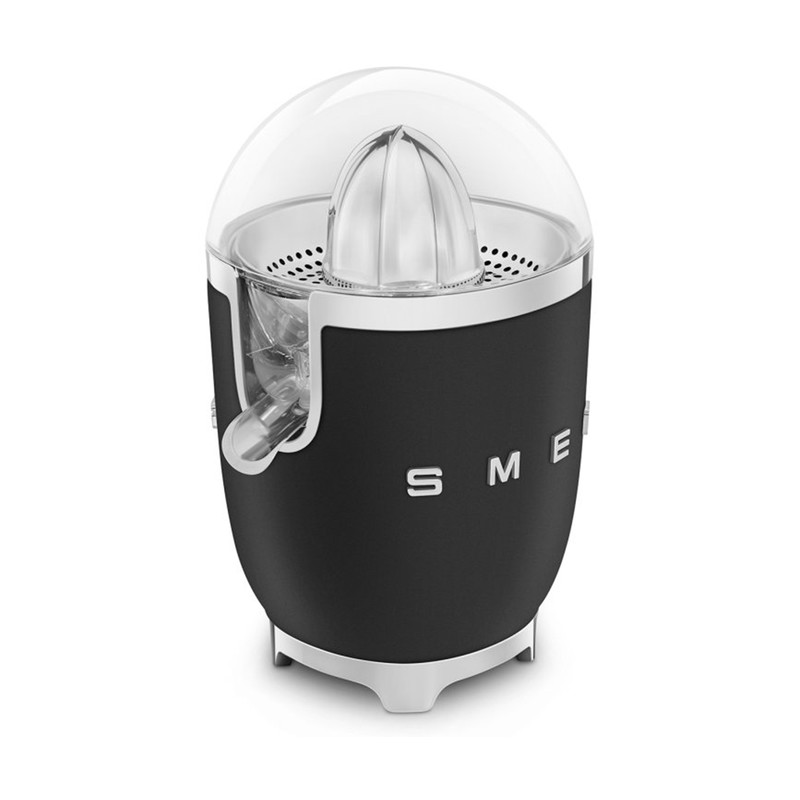 موتور اسمگ مدل CJF01 بسیار کم صدا بوده و دارای توانی معادل 70 وات است. این قدرت موتور، چرخش بالایی را برای آن تامین کرده است. همانطور که در تصاویر نیز مشخص است، این آب مرکبات گیر اسمگ از نوع بدون اهرم برقی میباشد. بدنه این آب مرکبات گیری smeg از بدنهای با جنس آلومینیوم ریختهگری یا همان دایکست ساخته شده است که هم در مقابل ضربه بسیار مقاوم است و هم در مقابل رطوبت، طول عمر بسیار بالایی دارد. همچنین مجهز به پایههای ضد لعزش میباشد که هنگام کار از تکان خوردن و لرزش آن جلوگیری میکند. عملکرد فشاری این آب مرکبات گیر اسمگ فشاری است. برخلاف دیگر آب مرکبات گیرهای دیگر که ابتدا باید دستگاه را روشن کرده و سپس به وسیل اهرم فشاری یا هر وسیلهی دیگری، میوه قاچ شده را روی مخروطی فشار میدهید، در این آب مرکبات گیر به محض فشار دادن مخروطی دستگاه شروع به کار میکند و مخروطی شروع به چرخش خواهد کرد. به این ترتیب هم در مصرف انرژی بسیار صرفه جویی خواهد شد، هم سطح امنیت بالا خواهد رفت. بنابراین کافیست که میوه نصف شده را روی مخروطی، به میزان بسیار کمی فشار دهید تا موتور قدرتمند دستگاه شروع به کار نماید. سیم اتصال این آب مرکبات گیری با پریز برق از طریق کابل 1 متری آن صورت میگیرد. محفظهی جمع آوری سیم در زیر دستگاه طراحی شده است تا نگهداری و حمل و نقل آن بسیار آسان شود.