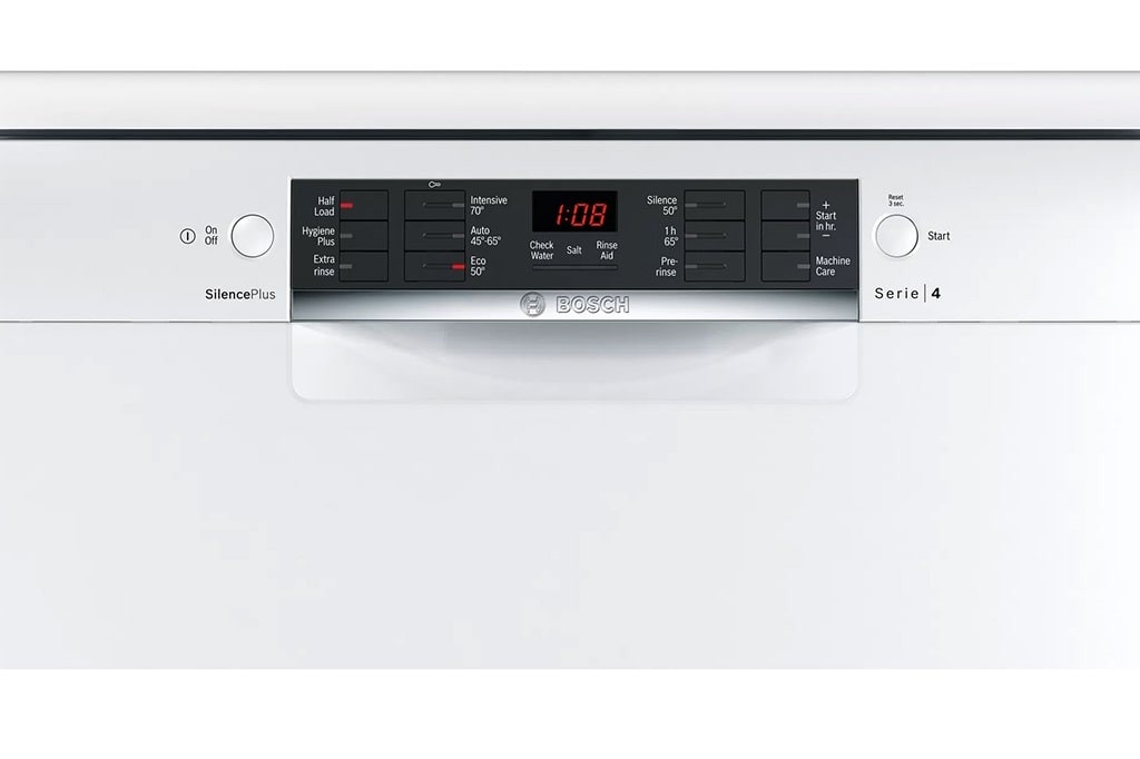 ماشین ظرفشویی بوش SMS46NW01B دارای ابعاد استاندارد و یک ماشین ظرفشویی از مدل ایستاده یا مبله است. ظرفیت شستوشوی 14 نفره آن میتواند پاسخگوی نیاز یک روز کامل یک خانواده 4 نفره و همچنین یک مهمانی باشد تا دیگر در پایان روز نگران ظرفهای کثیف نباشید.