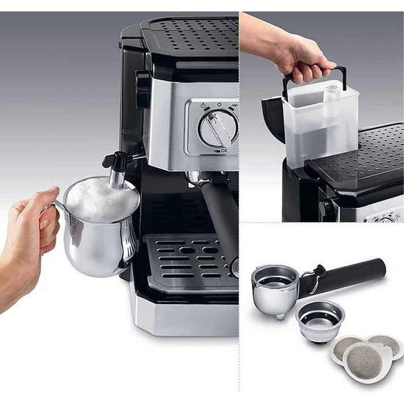 اسپرسوساز دلونگی مدل BCO431.S در دو رنگ مشکی و استیل جهت فروش به بارزار عرضه شده، دارای قابلیت تنظیم بخار دستی، استفاده از پودر قهوه، حجم مخزن آب 1.2 و حجم مخزن پودر قهوه 50 گرمی است. همچنین دارای پرتافیلتر قهوه با 2 نازل قهوه و 2 عدد بسکت قهوه دوبل و سینگل است. دارای نازل بخار بوده و فشار بخار آن 15 بار است. این دستگاه شامل 3 دکمه است که به شکل دستی میتوان با آنها کار کرد. بدنه این دستگاه از پلاستیک مقاوم و فشرده ساخته شده تا در برابر حرارت مقاوم باشد.