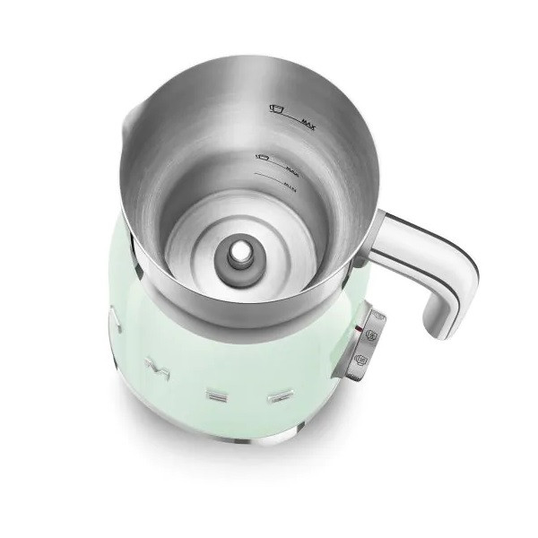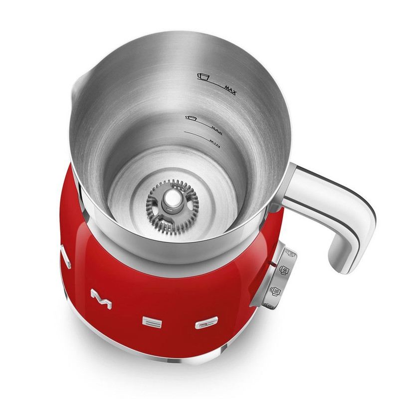 یک دستگاه حرفهای مخصوص تهیه فوم و شیر گرم برای قهوههای اسپشیالیتی مانند کاپوچینو و لاته، با طراحی زیبا و عملکرد آسان از برند لوکس اسمگ (SMEG).