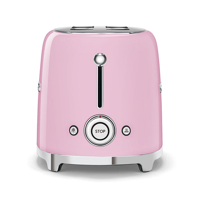 توستر اسمگ مدل TSF01 طراحی بسیار خاص و زیبایی دارد که یادآور وسایل خانگی قدیمی است. این مدل از سری 50s Style اسمگ است که با الگوبرداری از سبک طراحی دههی 60 و اوج دوران مدرنیته طراحی شدهاند. از همین رو در طراحی آنها از خطهای صاف و زاویههای تند استفاده نشده است. این سبک طراحی باعث میشود دستگاه حس خشک و صنعتی یک ماشین را نداشته باشد و بیشتر دکوراسیون آشپزخانه را گرم و صمیمی کند. این توستر دارای 2 جای نان است و از این رو برای خانوادههای کوچک دو نفره بسیار مناسب است. همانطور که از نام این دستگاه پیداست، کار اصلی آن تست کردن نان است. باوجود قابلیت تنظیم حرارت، کاربر میتواند نان تست خود را به میزان مورد علاقهی خود تست کند تا کاملا ترد، نیمه ترد یا نرم باشد. البته برای دستگاه دکمهی توقف هم در نظر گرفته شده تا کاربر بتواند فرایند تست شدن را متوقف کردن و میزان تردی نان را بسنجد. البته که توستر غیر از کار اصلی خود، برای یخ زدایی نان هم کاربرد دارد. شاید این مفیدترین کاربرد توستر باشد چون مشکل گرم کردن نان با مایکروفر یا روی گاز را حل میکند. وقتی نان را روی اجاق گاز گرم میکنیم احتمال سوختن آن بسیار زیاد است. همچنین وقتی نان را با مایکروفر گرم میکنیم تنها برای چند دقیقه حالت تازگی دارد و پس از آن کاملا خشک و سفت میشود. اما توستر با حرارت طبیعی، متداوم و نه چندان زیاد نان را یخزدایی و سپس گرم میکند. به این صورت نان طوری گرم میشود که انگار به تازگی از تنور بیرون آمده است. برای این که خورده نان داخل توستر جمع نشود و تمیز کردنش کاربر را دچار دردسر کند، یک سینی کشویی زیر دستگاه کار گذاشته شده که خوردههای نان روی آن میریزد و کاربر به سادگی آن را بیرون میکشد و تمیز میکند.