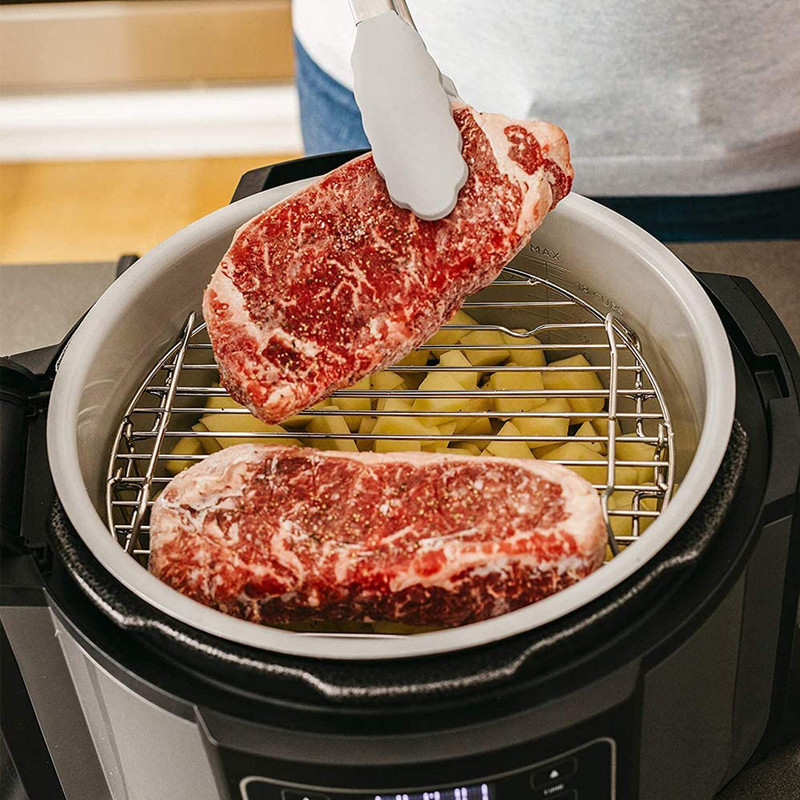 | سایر توضیحات | برنامه های خودکار ( پخت و پز تحت فشار زودپز ، سرخ کن ، بخار پز ، آرام پز ، پخت / کباب ، گریل ، گرم نگهدار )(Pressure Cooking , Steam , Slow Cook , Sear/Saute , Air Crisp , Bake/Roast , Gril , Keep Warm )قابلیت شستشو لوازم در ماشین ظرفشوییکاملا عاری از BPAدارای پایه ضد لغزشظرفیت سبد سرخ کن 3.7 لیترظرفیت ظرف پخت 6 لیتردارای فناوری پخت و پز TenderCrisp که غذاهایی که در داخل آبدار و از بیرون ترد هستند را به شما می دهد |