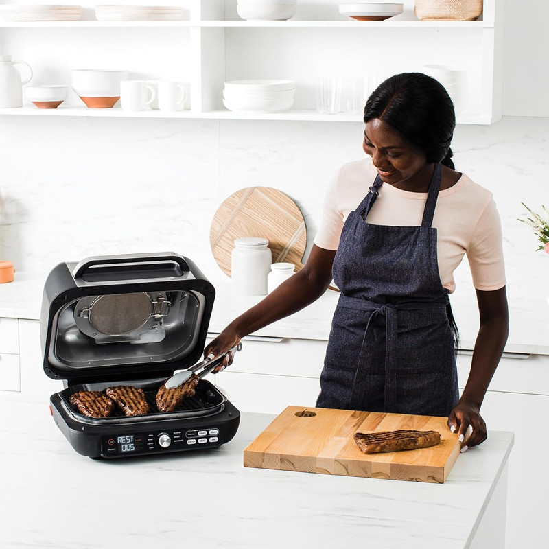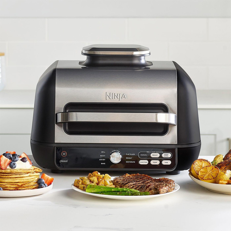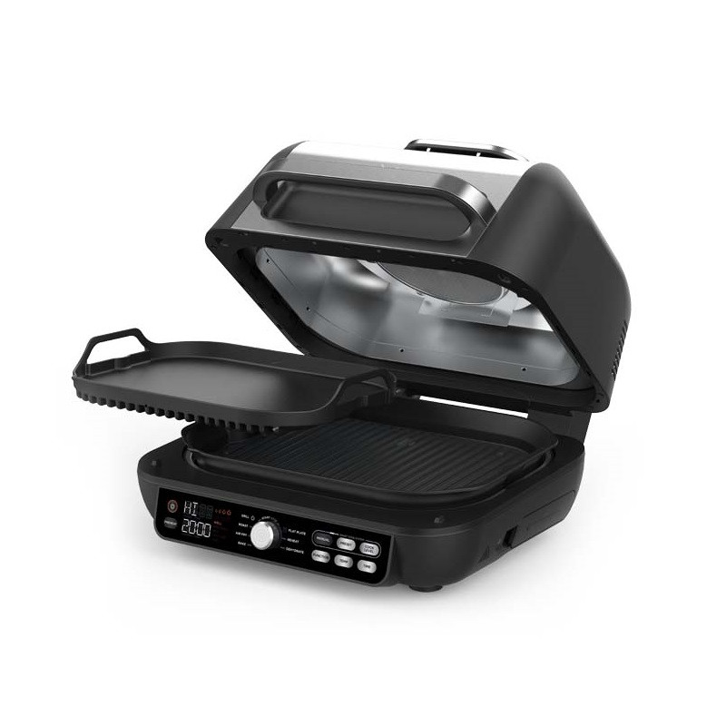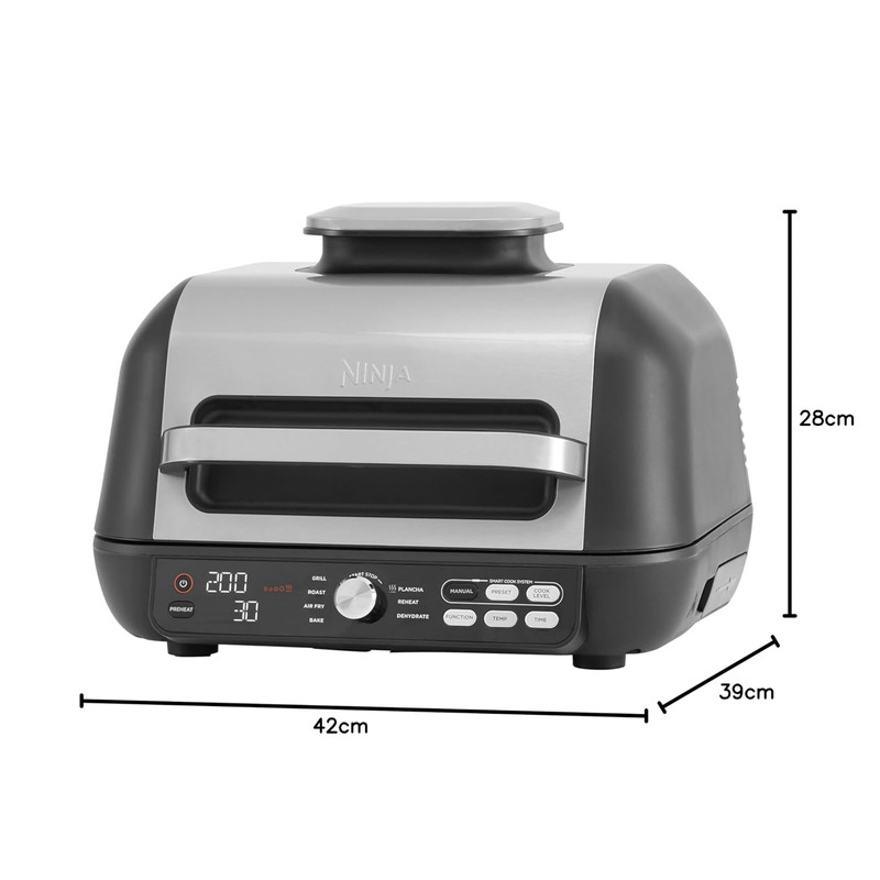 گریل و سرخ کن 651 نینجا یکی از حرفه ای ترین تولیدات برند نینجا بوده که به صورت دو کاره ساخته شده است. این دستگاه کاملاً حرفه ای بوده و می تواند سرعت عمل شما را در آشپزی کردن چند برابر کرده و شما را در آماده سازی غذایی با کیفیت و سالم یاری کند. این محصول دارای یک سبد سرخ کن بوده که 3.8 لیتر گنجایش دارد و صفحه گریل آن نیز به راحتی می تواند 6 عدد برگر را برای شما آماده کند. سرخ کن و گریل نینجا کاملاً مناسب یک خانواده 4 الی 5 نفره بوده و می توانید با استفاده از آن بهترین غذا ها را برای خودتان و میهمانانتان آماده کنید. این دستگاه با برخورداری از قدرت 2460 وات دارای 7 برنامه از پیش تعیین شده و خودکار آشپزی می باشد. که شامل؛ سرخ کردن، گریل، پخت انواع پنکیک و پیتزا، کباب کردن، پختن، گرم کردن مجدد و خشک کردن انواع میوه و سبزی است. شما با کمک این برنامه های پخت می توانید انواع وعده های غذایی مختلفی را در کم ترین زمان ممکن آماده کنید. البته ناگفته نماند که به دلیل وجود سیستم گردش هوای داغ، سرخ کردن مواد غذایی در این محصول نسبت به روش های دیگر با کاهش 75 درصدی مصرف روغن انجام خواهد شد. صفحات قابل تعویض صفحه پخت گریل: این صفحه گریل قدرتمند جهت آماده کردن انواع استیک، سوسیس های آبدار، جوجه، تکه های مرغ کبابی، ماهی، میگو، همبرگر، سیخ هالومی، بیکن ترد و انواع سبزیجات استفاده می شود. این غذاها را می توانید با درب باز یا بسته بپزید و نوش جان کنید. صفحه تخت پخت و پز:به کمک این صفحه می توانید مواد غذایی با بافت ظریف و نازک را به سرعت تفت دهید. برش های نازک گوشت ماهی میگو و سالمون سبزیجات، نیمرو، املت، پیتزا، پنکیک، فاهیتا و غیره. سبد بخارپز: یک عدد سبد ۳.۸ لیتر کریسپیر و مشبک جهت برنامه هواپز، برای انواع مرغ، گوشت، سیب زمینی و سبزیجات قابلیت اسمارت دستگاه به لطف دماسنج هوشمند برای سنجش دمای پخت است. بدون حدس و گمان، نیازی به نگرانی در مورد کم پختن یا پخت بیش از حد و حتی برش دادن غذا برای دیدن آماده بودن آن ندارید. کاوشگر دیجیتالی پخت و پز دقیقاً دمای غذای شما را در حین پخت کنترل می کند، بنابراین شما نیازی به چک کردم مدام غذایتان جهت پخت ندارید. در انتها با هشدار صوتی نمایشگر دیجیتال نشان میدهد که چه زمانی برای سرو آماده است.