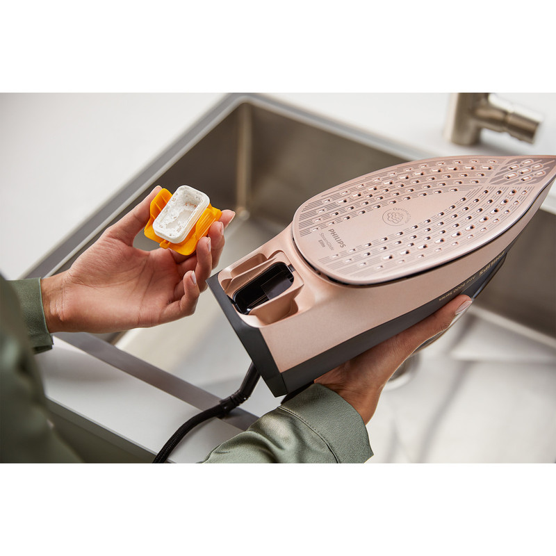 از جمله قابلیتها و ویژگیهای این اتو برخورداری از سیستم ضدرسوب (Quick calc Release) است که سبب عملکرد و کارایی بهتر اتو شده و از بروز اختلال در اتوکشی به مرور زمان جلوگیری میکند. با این قابلیت اتوی شما طول عمر و ماندگاری بیشتری خواهد داشت. مخزن رسوبی این وسیله هم از لکگرفتن لباسها و کثیفشدن آنها جلوگیری میکند. همچنین از سیستم ضدچکه اتو برخوردار است که سبب لکنشدن پارچه و لباس کاربران در زمان اتوکشی میشود. با این وسیله حتی قبل از تنظیم دما به راحتی میتوانید لباسهایتان را اتو کنید به شکلی که آنها نسوزند. این اتو مجهز به فناوری حسگر حرکتی است که با این قابلیت، اتو به راحتی تشخیص میدهد تا فقط در زمان حرکت روی لباس، بخار تولید کند و با ایجاد بخار به شکل اتوماتیک فرایند اتوکشی را برایتان آسان میکند و به آن سرعت میبخشد. از این طریق بدون خستگی و با کمترین میزان تلاش میتوانید همه لباسها را با آن اتو بزنید. این وسیله همچنین از قابلیت بخاردهی عمودی برخوردار است که با آن به جز لباس امکان اتوزدن پرده، رومبلی، رومیزی و... را هم خواهید داشت. هدف این برند از ارائه کلیه این ویژگیها، راحتی کاربر در زمان استفاده از این اتو است.