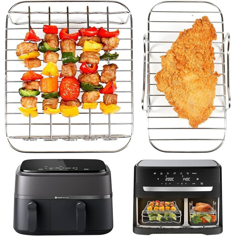 | سایر توضیحات | جنس بدنه : پلاستیک /جنس محفظه پخت: تفلون /8 برنامه پخت از پیش تنظیم شده /تکنولوژی تهویه هوا سریع /سازگاری با اپلیکیشن HomeID /دارای یک سبد با ظرفیت 6 لیتر و یک سبد با ظرفیت 3 لیتر /2 کشو با دمای از پیش تعیین شده برای سیب زمینی سرخ شده تازه، سیب زمینی سرخ شده یخ زده، مرغ، گوشت، سبزیجات، ماهی، کیک و گرم کردن مجدد. |