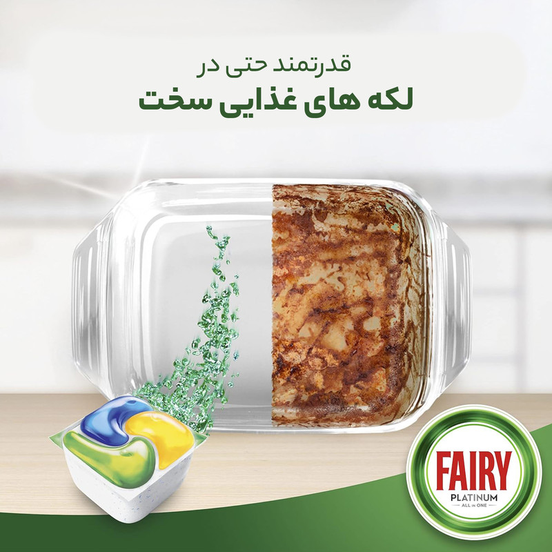 قرص ماشین ظرفشویی فیری پلاتینوم، دارای ماده ای است که از ایجاد چربی ها و رسوبات آهکی جلوگیری میکند ولی در از بین بردن رسوباتی که تا کنون در ماشین ظرفشویی ایجاد شده اند تاثیری ندارد و برای اطمینان از حذف کامل رسوبات آهکی بایستی پس از هر 60 بار استفاده از دستگاه، یکبار آن را جرمگیری نمایید. قرص ماشین ظرفشویی فیری پلاتینیوم 43 عددی محصولی بسیار با کیفیت، موثر و کاربردی از برند فیری است. این محصول با عملکرد فوق العاده خود، تمامی ظروف را از چربی ها، کثیفی ها و لکه های سخت و دشوار پاکسازی می کند و ظروف را تمیز، درخشان و شفاف می نماید. ماشین ظرفشویی بدلیل عملکرد سریع و با کیفیت و نیز صرفه جویی در هزینه ها و آب و برق مصرفی، یکی از وسایل کاربردی و متداول می باشد. برای کارایی هر چه بهتر ماشین ظرفشویی لازم است که از شوینده های مخصوص و با کیفیت ماشین ظرفشویی استفاده شود. این موضوع هم بر کیفیت شستشو و هم بر سالم ماندن دستگاه تأثیر مستقیمی دارد. قرص ماشین ظرفشویی فیری پلاتینیوم محصول جدیدی از برند فیری می باشد و دارای ویژگی های منحصر بفردی است که آن را در رده محصولات پرفرش این کمپانی قرار داده است. سخت ترین لکه ها ناشی از باقیمانده غذاها و مواد سوخته چسبیده به ظروف با استفاده از این محصول بطور کامل برطرف می شوند. استفاده از قرص ماشین ظرفشویی فیری پلاتینیوم موجب می شود که ظروف کاملا تمیز شوند و جلوه ای تازه پیدا کنند. این محصول کدری ظروف را هم کاملا از بین برده و آنها را شفاف و درخشان می سازد.