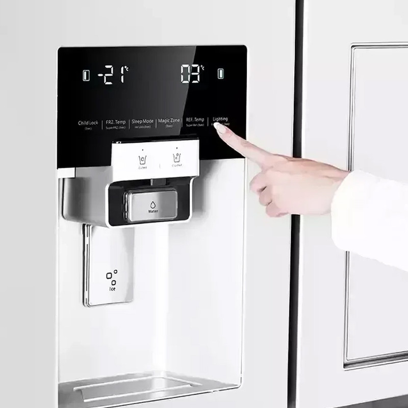 دوو SXi20-31W با رنگ سفید خود، حسی از پاکیزگی، آرامش و وسعت را به فضای آشپزخانه میبخشد. طراحی صاف و خطوط مدرن، به همراه دستگیرههای مخفی که به ایجاد سطحی یکپارچه و مینیمال کمک شایانی کردهاند، زیبایی دستگاه را در عین سادگی، دوچندان میکند. این سبک طراحی به آن اجازه میدهد تا به راحتی با انواع دکوراسیونهای آشپزخانه، از کلاسیک تا مدرن، هماهنگ شود. پنل کنترل LED لمسی که بر روی درب تعبیه شده، علاوه بر دسترسی آسان و سریع به تنظیمات دما و سایر قابلیتهای هوشمند، جلوهای از تکنولوژی پیشرفته را به نمایش میگذارد و از قابلیت قفل صفحه نمایش هم برای جلوگیری از تغییرات ناخواسته بهره میبرد. یکی از ویژگیهای نوآورانه و بسیار کاربردی این مدل، "درب سوم" یا همان بار خانگی پیشرفته است که با "سامانه سرمایش فلزی Metal Ice Cooling" اختصاصی خود همراه شده است. این درب، که احتمالا به عنوان یک محفظهی جداگانه با دسترسی سریع طراحی شده، امکان نگهداری نوشیدنیها، سسها و مواد غذایی پرمصرف را در دمایی بهینه و بدون نیاز به باز کردن کامل درب اصلی یخچال فراهم میکند. سیستم سرمایش فلزی در این بخش، به حفظ بهتر و سریعتر دمای مطلوب کمک میکند. علاوه بر این، "سامانه خودکار بسته شدن دربها" یک لمس از لوکس بودن و راحتی بیدردسر را به ارمغان میآورد؛ دیگر نگران باز ماندن اتفاقی دربها و اتلاف انرژی نخواهید بود.