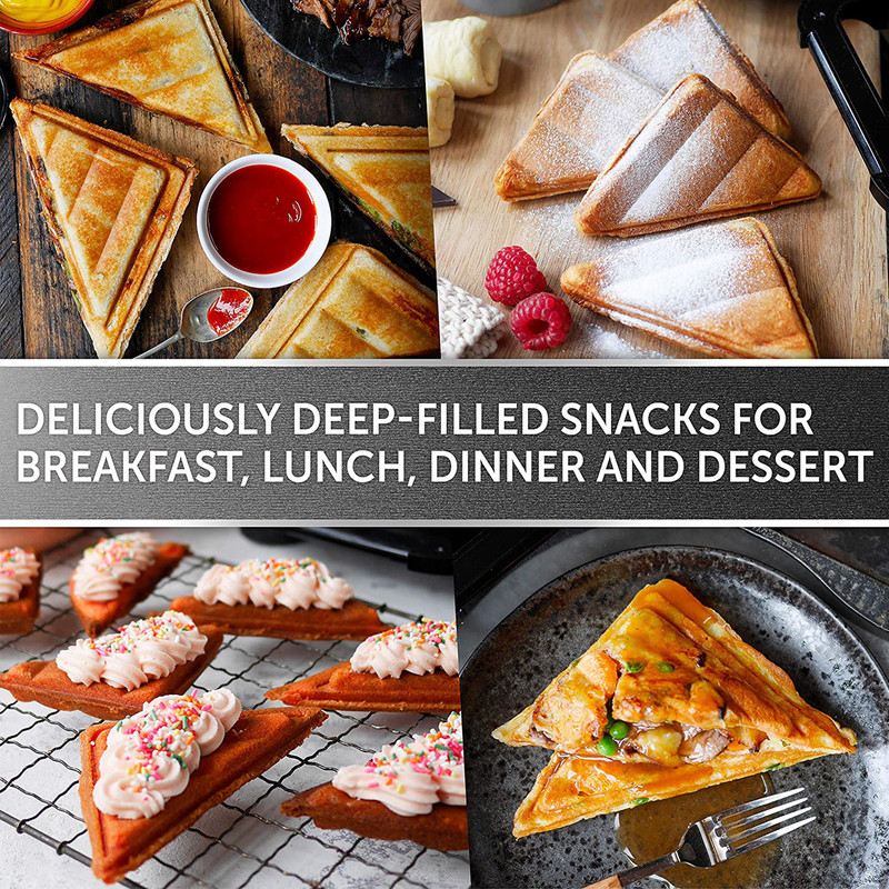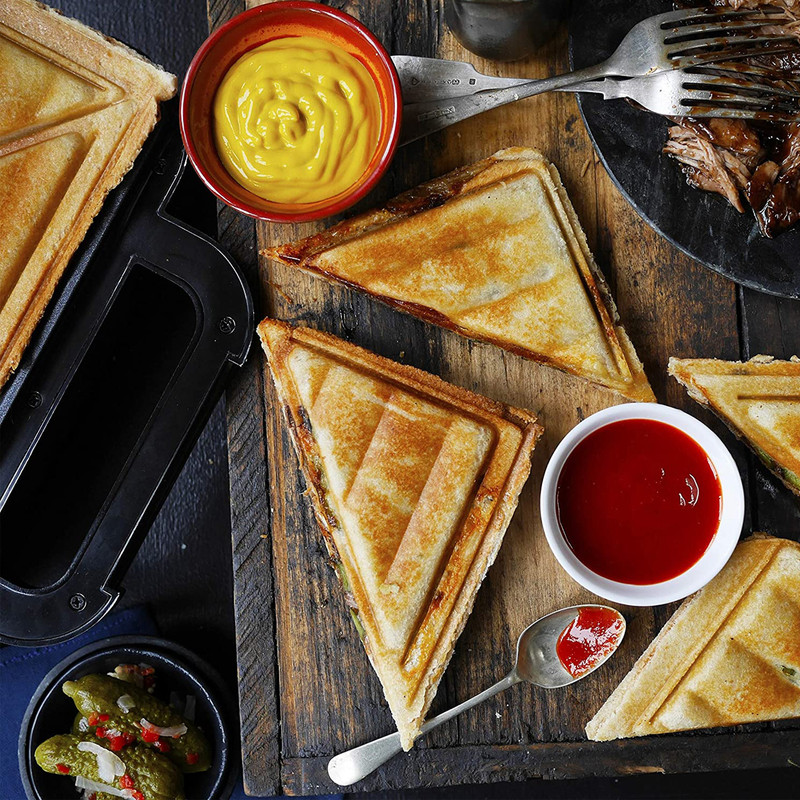 ساندویچسازی با ظرفیت دو برش، طراحی عمیقتر برای پرکردن بیشتر، صفحات جداشدنی و ضدچسب، مناسب برای تهیه ساندویچهای خوشمزه و تمیز.