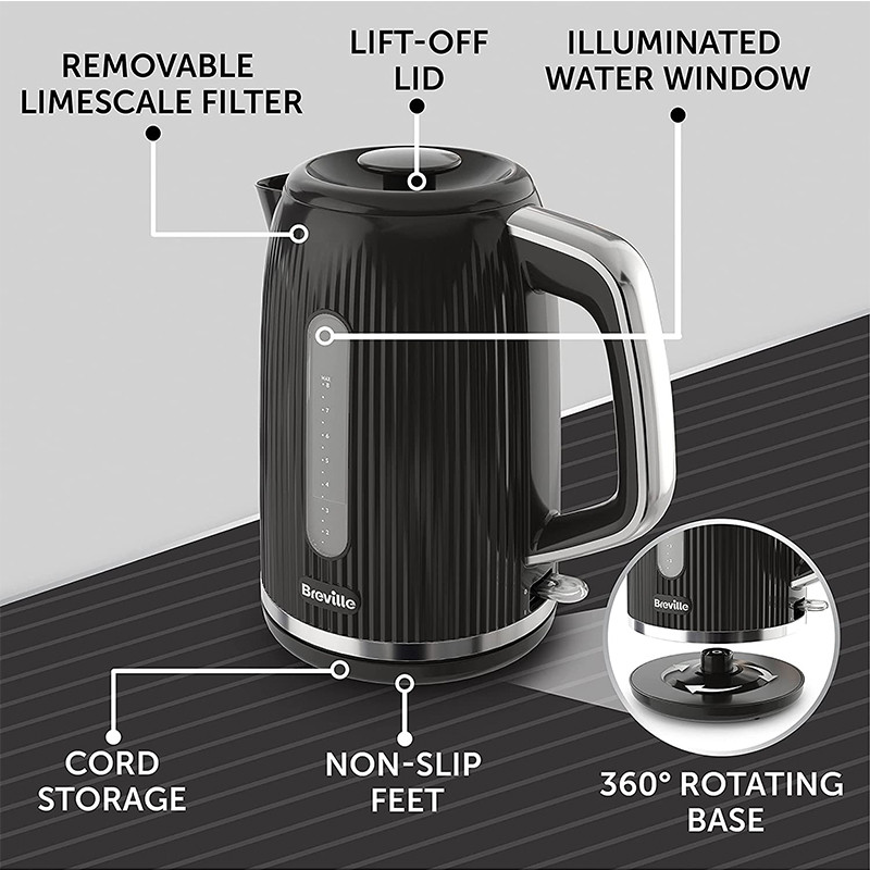 کتری برقی برویل مدل Bold از دستگاههای بسیار باکیفیت و زیبای تولیدشده توسط شرکت برویل است. این کتری برقی زیبا ظاهری متفاوت از بسیاری محصولات تولیدی شرکتهای دیگر دارد. ظرفیت بالای کتری اجازه جوش آوردن یا گرم کردن مقدار زیادی آب را میدهد تا بتوانید نوشیدنیهای گرم بیشتری را در کمترین زمان ممکن سرو کنید. بدنه دستگاه دولایه میباشد تا آب را مدتزمان بیشتری گرم نگه دارد و از طرفی بدنه دستگاه داغ نشود. پایه کتری قابلیت نگهداری سیم برق را در خود دارد. استفاده از سیستم پایه-کتری امکان چرخش کتری بهصورت 360 درجه را میدهد تا محدودیتی در محل نگهداری و استفاده آن وجود نداشته باشد از طرفی برای افراد چپدست نیز بهراحتی قابل بلند کردن و استفاده باشد. این کتری برقی گزینه مناسبی برای افرادی است که طرفدار نوشیدنیهای مختلف گرم هستند ولی وقت کافی ندارند یا ترجیح میدهند یک نوشیدنی فوری تهیه و استفاده کنند و در کوتاهترین زمان آب جوش لازم برای تهیه قهوه فوری یا نسکافه، چای فوری یا کیسهای، و انواع دمنوش و چای سبز خود را داشته باشند.