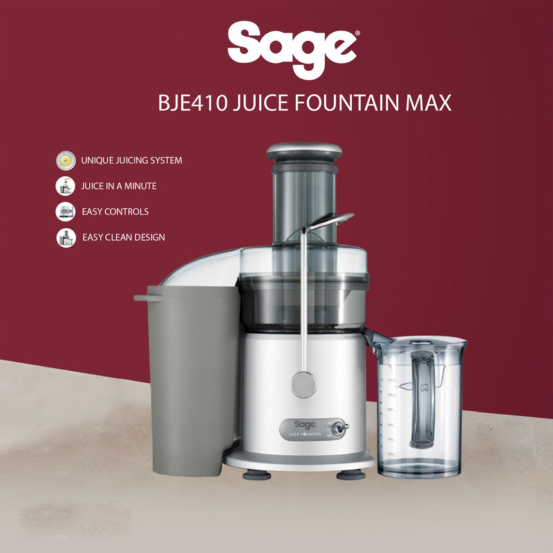 اگر بدنبال یک آبمیوه گیری حرفه ای و همیشگی هستید پیشنهاد ما به شما آبمیوه گیری سیج مدل BJE410 میباشد. این دستگاه از موتور حرفه ای و صنعتی 1200 وات بهره مند است که توان بالایی در آبگیری حجم بالا را داراست و از مهم ترین محاسن این دستگاه بهره بردن از تیغه تیتانیوم که در سریع ترین زمان ممکن آبگیری را انجام داده و از دادن حرارت به آبمیوه جلوگیری میکند که این ویژگی باعث حفظ تمامی خواص و ویتامین های موجود در میوه میشود همچنین صافی بکار رفته در تیغه از جنس میکرو صافی میباشد که تا 70 درصد آبگیری میوه را انجام میدهد و بیشترین حجم آبمیوه با خشکترین تفاله را در آبمیوه گیری های موجود در بازار به شما تحویل میدهد. دهانه ورودی بزرگ که براحتی قابلیت آبگیری سیب کاملا درسته و همچنین پارچ تفاله بزرگ با گنجایش 3 لیتر که حجم زیادی از میوه را میتوانید آبگیری کنید از دیگر مزیت های این محصول میباشد. محصولات سیج از کیفیت بسیار بالایی برخوردار است و جنس هایی برای یک عمر استفاده میباشند.