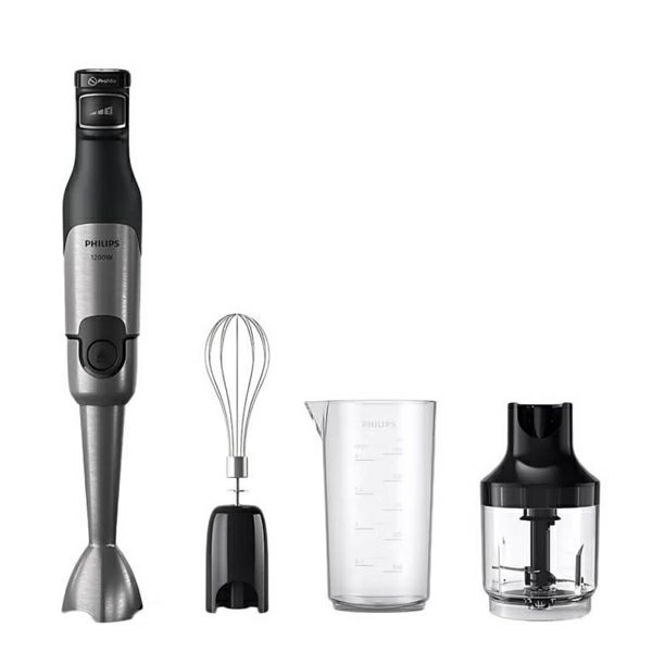 گوشتکوب برقی فیلیپس مدل HR2683 با توان ۱۲۰۰ وات، طراحی ارگونومیک و فناوری ProMix، گزینهای ایدهآل برای تهیه انواع سوپ، اسموتی و پوره است.