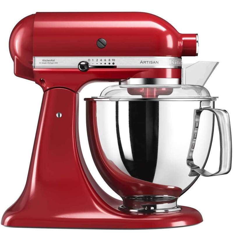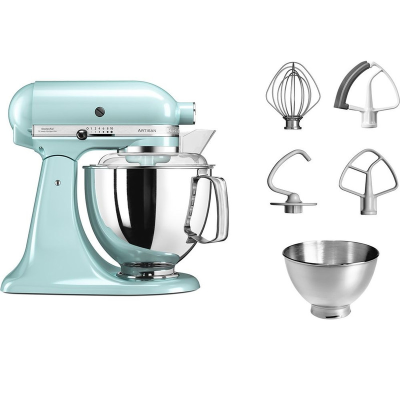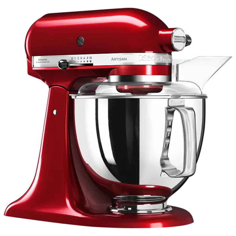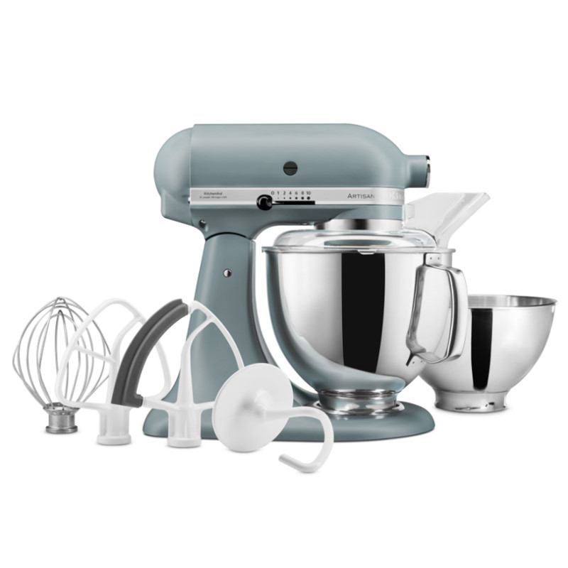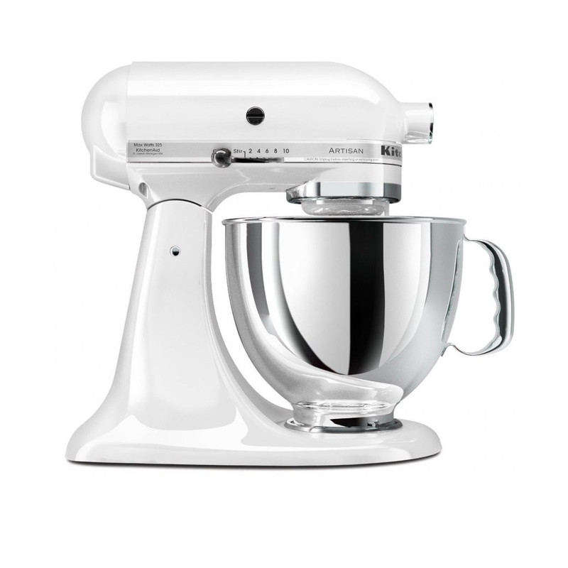 همزن KitchenAid Artisan مدل 5KSM175PS ترکیبی از دوام و طراحی کلاسیک است که مناسب استفاده خانگی حرفهای یا نیمهحرفهای میباشد. بدنهی فلزی مقاوم به همراه موتور ۳۰۰ وات AC با گیربکس مستقیم، باعث عملکرد بدون لغزش و صدای پایین میشود. سیستم Planetary Mixing به ابزار اجازه میدهد همزمان حرکت دورانی و مداری داشته باشد تا مواد کاملاً یکنواخت ترکیب شوند. دستگاه تا ۱۰ سرعت قابل تنظیم (۵۸ تا ۲۲۰ دور در دقیقه) عملکرد دقیق را در حالتهای مختلف فراهم میکند. کاسهی استیل ضدزنگ با ظرفیت ۴.۸ لیتر به همراه یک کاسهی کوچکتر ۳ لیتری تعبیه شده که تعویض سریع بین دستورها را آسان میسازد. ابزارهای استاندارد شامل قلاب خمیر، همزن سیمی، بیتر تخت، Flex‑Edge Beater و Pouring Shield (محافظ پاشش مواد) در این دستگاه ارائه شده است. با ظرفیت تهیه خمیر مخلوط تا حدود ۲ کیلوگرم، کیک ۲.۷ کیلو، یا تا ۱ لیتر خامه زدهشده، برای پختهای پرحجم نیز مناسب است. این مدل علاوه بر زیبایی ظاهری دارای وزن حدود ۱۱ کیلوگرم و ابعاد جمعوجور ~۳۶×۲۴×۳۷ سانتیمتر است. کابل برق تقریباً ۱.۰۶ متر امکان جابجایی راحت را فراهم میکند