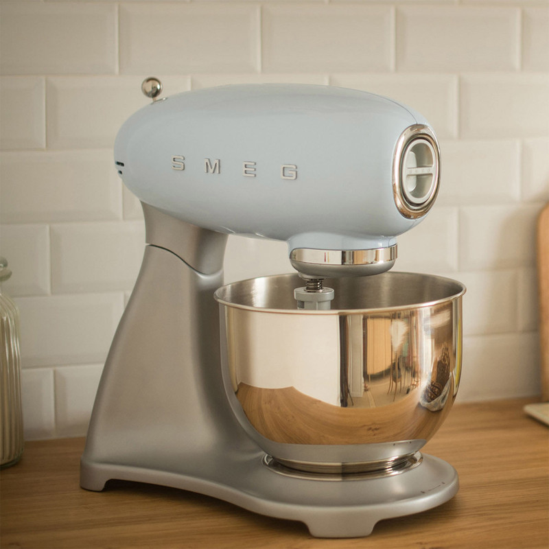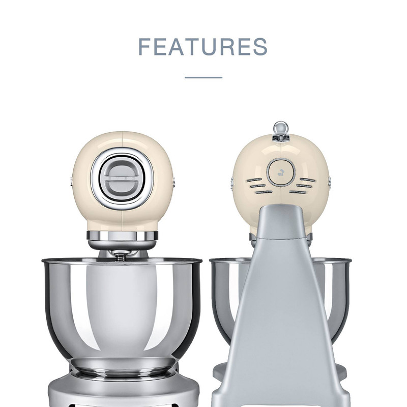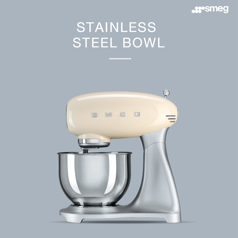 همزن «اسمگ» (Smeg) مدل «SMF01» محصولی کارآمد و باکیفیت است که از نوع همزنهای پایهدار محسوب میشود. پایه این محصول از آلیاژ روی تولید شده است. جنس کاسه آن از استیل ضدزنگ است و خود دستگاه نیز از آلومینیوم ساخته شده است. این همزن دارای قابلیت تنظیم سرعت است و از کنترل اهرمی برخوردار است. همزن SMF01 دارای تکنولوژی است که باعث میشود دستگاه شروع به کار آرامی داشته باشد و با موتور دایرکت موشن خود به کار خود ادامه دهد. ظرفیت این محصول نیز بسیار زیاد است؛ بهطوریکه قادر است 1 کیلوگرم آرد یا 2.8 کیلوگرم خمیر کیک را در خود نگه دارد. این همزن دارای سریهای تخت و خمیرزن است تا دست آشپز را در تهیه و پخت غذاهای مختلف باز نگه دارد. همزن SMF01 با توان بالا میتواند در تهیه و ترکیب مواد اولیه آشپزی و شیرینیپزی کمک شایانی به کاربر کند. گفتنی است، سازنده این دستگاه، شرکت اسمگ، یکی از تولیدکنندگان و عرضهکنندگان موفق لوازمخانگی است که سالها در حوزه معرفی و عرضه محصولات باکیفیت مشغول است. این شرکت ایتالیایی کار خود را از قرن 19 میلادی آغاز کرده و امروزه بهعنوان برندی محبوب مورد کاربران لوازمخانگی است. همزن SMF01 یکی از محصولات خوشساخت این شرکت مطرح است که از ظاهر زیبا و کارایی بالایی برخوردار است.