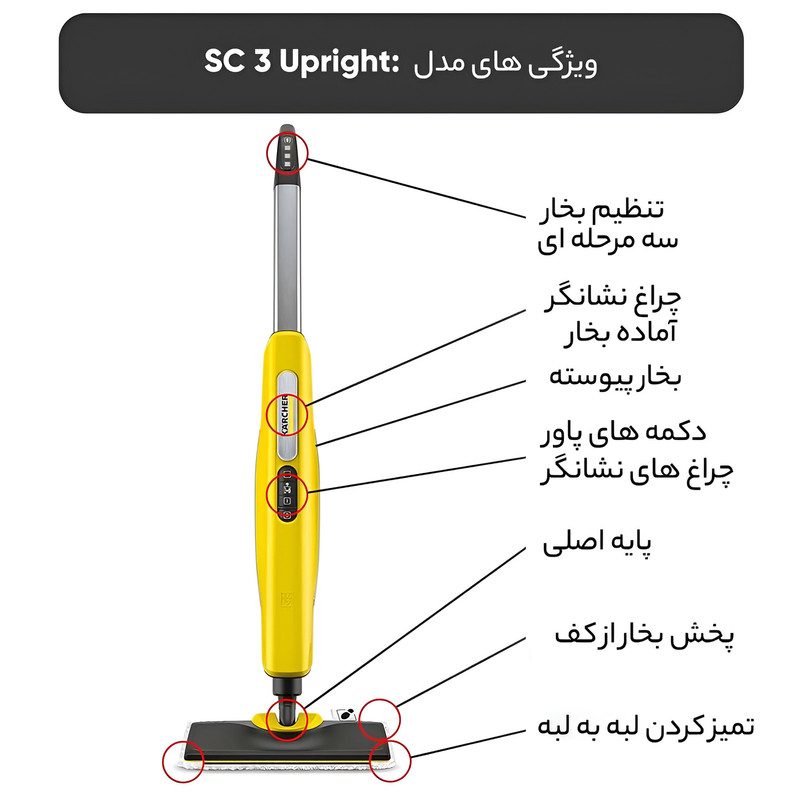 | سایر توضیحات | بخارشوی خانگی مدل SC3 Upright EasyFix کارچر با به همراه داشتن حوله میکروفایبر با قابلیت جدا شدن به راحتی و بدون تماس با دست، نتیجه ای بهتر و موثرتر ایجاد می کند. ظرفیت مخزن آب بخارشور کارچر 0.5 لیتر می باشد و تنها در مدت زمان 30 ثانیه آب درون مخزن را به جوش می رساند، بخاردهی را شروع می کند و برای استفاده آماده می شود. |