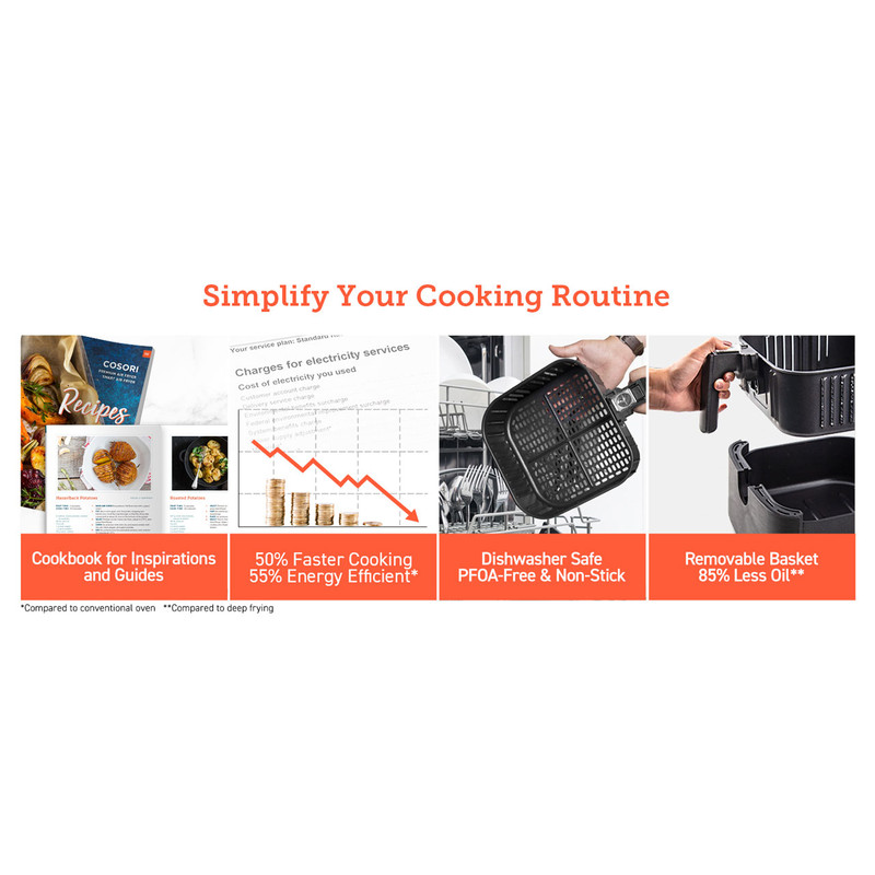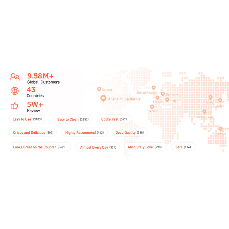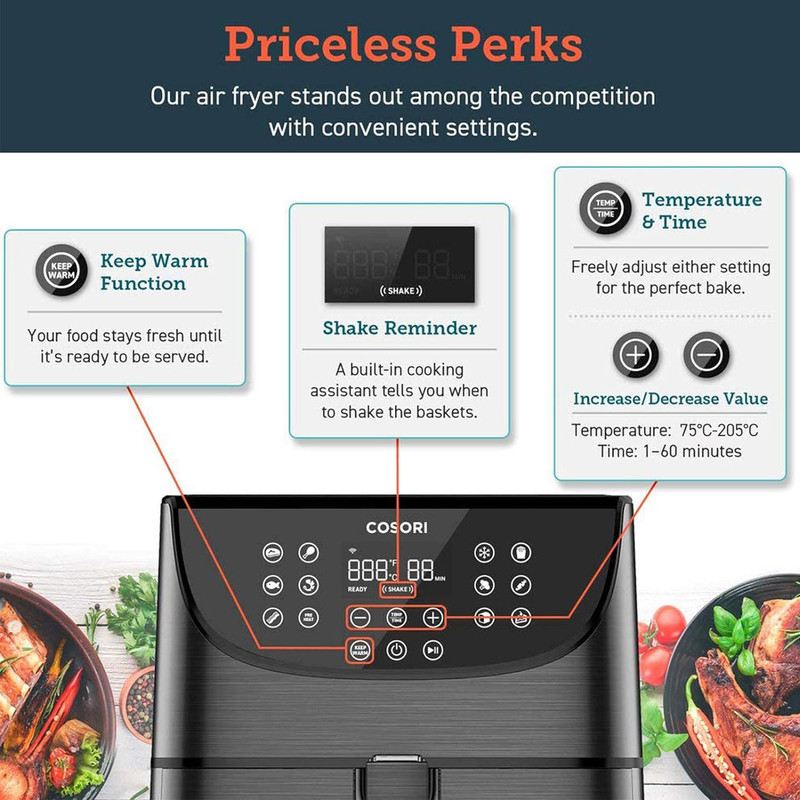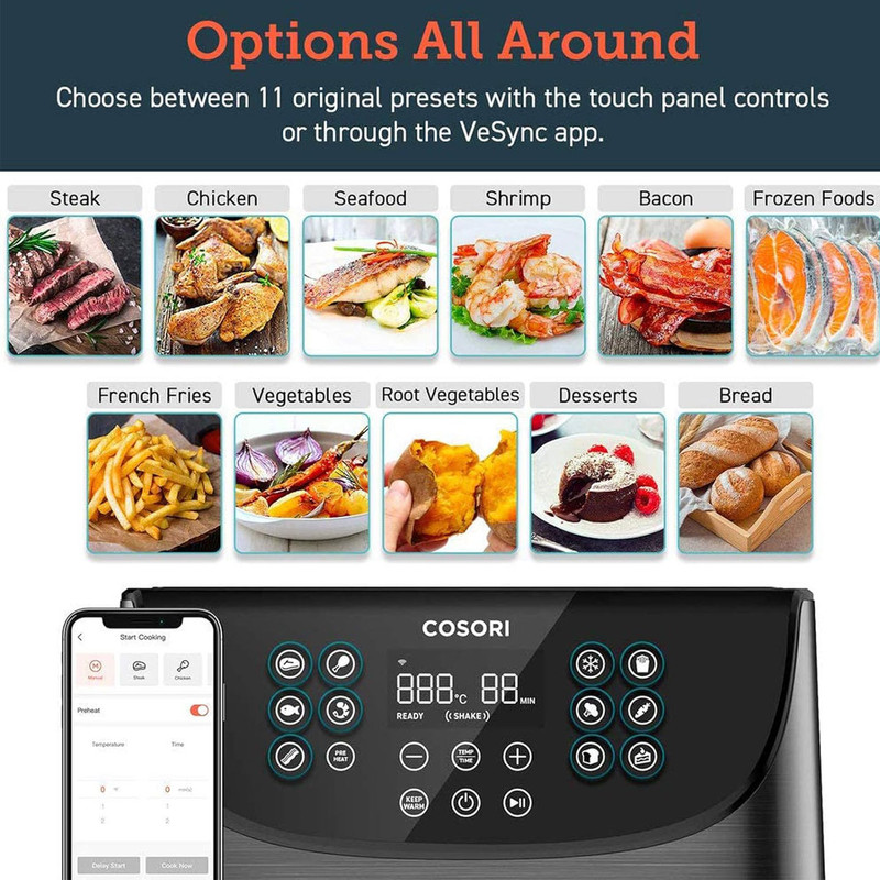 | سایر توضیحات | استیل با روکش نچسب فاقد مواد شیمیایی PFOA / ظرفیت 5.5 لیتر / قابلیت کنترل دستگاه از طریق نرم افزار تلفن هوشمند /【کنترل WiFi و APP】 سرخ کن خود را از راه دور از طریق برنامه رایگان VeSync کنترل کنید و از کنترل از هر نقطه برای تنظیم لذت ببرید و پیشرفت وعده های غذایی خود را نظارت کنید. توجه: این محصول با الکسا سازگار نیست / طراحی سبد مربع 15٪ فضای پخت و پز بیشتر در مقایسه با سبد های گرد ارائه می دهد / این سرخ کن می تواند 2700 گرم مرغ کامل را در خود جای دهد / برنامه ها ( استیک ، مرغ ، غذاهای دریایی ، میگو ، بیکن ، غذاهای یخ زده ، سیب زمینی ، سبزیجات ، سبزیجات ریشه ای ، دسر و نان ) / درای برنامه گرم نکهدارنده / دارای برنامه Shake reminder که زمان گردش مواد در سبد را یادآوری می کند برای پخت یکنواخت تر / دارای دفترچه رسپی با 100 دستور پخت / ظرفیت 5.5 لیتر XL مناسب برای کل خانواده با 4-6 عضو |