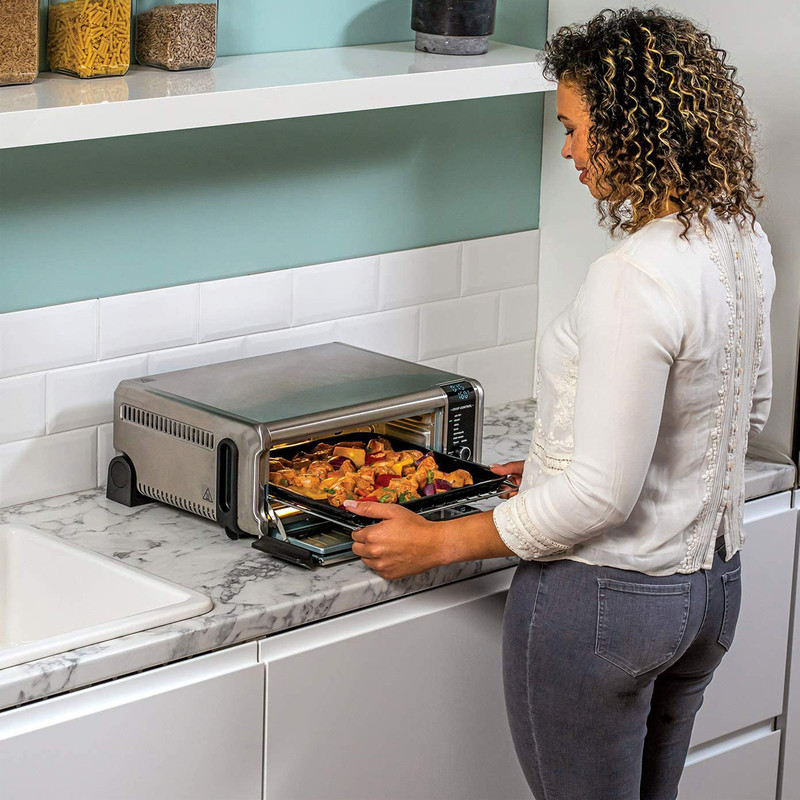 | سایر توضیحات | ظرفیت توسط شرکت سازنده به لیتر تعریف نشده و ظرفیت دستگاه ( یک پیتزای 33 سانتی متری، 1 کیلوگرمی سیب زمینی سرخ شده یا 6 تکه نان ) به این صورت توصیف شده / برنامه های پخت Air Fry, Roast, Grill, Bake, Toast, Bagel, Keep warm , Dehydrate ( سرخ کن ، کباب کردن ، گریل ، پخت کیک و ... ، تست نان ، میوه و سبزی خشک کن ، شیرینی و گرم نگهدارنده ) / توان 2400 وات / دارای 6 عدد المنت با تکنولوژی مادون قرمز / محدوده تنظیم دما 40 الی 230 درجه سانتی گراد / شناسه جهانی EAN: 622356240390 / |