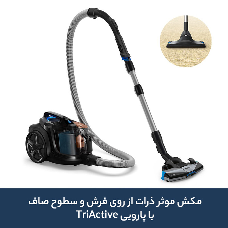 باز هم شاهد شاهکار جدید غول هلندی هستیم . برند فیلیپس با طراحی و ساخت آخرین مدل های جارو برقی توانسته است محبوبیت خود را بین مردم دنیا همچنان حفظ کند . مدل XB7150 جزء آخرین سری های مخزن دار فیلیپس است که با امکانات بی نظیر توانسته یک سر و گردن از رقبای خود بالاتر باشد. این مدل دارای موتور کمپرسور فوق حرفه ای با مصرف برق 900 وات و با بیشترین میزان مکش 750 وات است که بر خلاف مدل های قبلی با مصرف برق های 1800 تا 2200 واتی و مکش ماکسیموم 500 واتی هم کم مصرف و هم پر قدرت تر به حساب می آید . این مدل دارای فناوری PowerCyclone 8 است که از یک حرکت چرخشی قدرتمند برای به حداکثر رساندن جریان هوا و ارائه بالاترین قدرت مکش استفاده می کند. جریان هوای فوق سریع در محفظه استوانه ای ، گرد و غبار را با سرعت بیش از 185 کیلومتر در ساعت از هوا جدا و زباله ها را کاملا فشرده سازی می کند و قدرت مکش قوی تری را برای مدت طولانی تری برای تمیز کردن فراهم می کند.این مدل دارای سنسور بسته شدن کامل مخزن است تا به هیچ عنوان گرد و غبار به بیرون نیاید . داخل این دستگاه سه نوع فیلتر و چند نوع سنسور آلرژی کار گذاشته شده است که طبق تایدیه ی بهداشت انگلستان با وجود این سنسور ها و فیلتر ها هیچ گونه میکروب و آلرژن به بیرون دستگاه انتقال پیدا نمیکند . قدرت دستگاه هم به صورت دیجتالی روی بدنه و هم به صورت مکانیکی روی دسته تنظیم میشود . این مدل دارای سه پارو (پارو اصلی دو حالته +TriActive - پارو مخصوص نقاط سخت - پاروی مخصوص سطح های نرم ) و دو عدد سری مخصوص مبل و گوشه دیوار است. ( محل قرار گیری دو سری در قسمت پشت دستگاه تعبیه شده است ) سری اصلی این دستگاه +TriActive است که به صورت خاصی طراحی شده است تا با یک حرکت سه عمل جمع آوری گرد و غبار ، جمع آوری زباله های بزرگ و با دو برس تعبیه شده جمع آوری گرد و غبار گوشه و کنار را انجام بدهد و 99.9 % زباله ها و گرد غبار را به دام بیندازد . ناگفته نماند که روی لوله خرطومی برس نرمی تعبیه شده است که برای استفاده و گرد گیری سریع بسیار مناسب است . با تمام این توضیحات آیا شکی برای خرید این ابر قدرت باقی میماند ؟