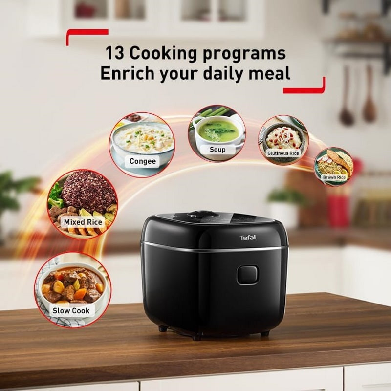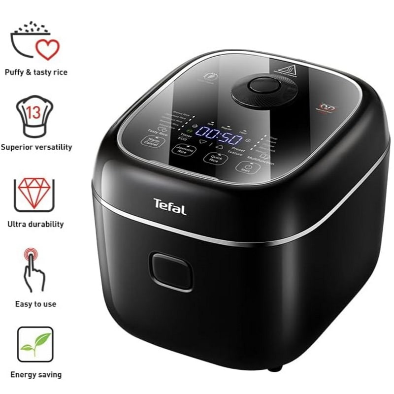 با مولتی کوکر تفال مدل RK7778 میتوان 13 عملکرد باورنکردنی پخت و پز را انجام داد و یک ظرفیت بزرگ برای تغذیه کل خانواده. درست کردن انواع غذا، میان عده ها و دسرهای خوشمزه را سریع و آسان می کند. یک دستگاه که کارهای زیادی می کند! مهمانان خود را با 13 عملکرد پخت و پز در یک قابلمه تحت تاثیر قرار دهید، از جمله ( پخت تحت فشار، آرام پز، بخارپز، پخت/کباب کردن/تفت دهی، گریل، و خشک کن میوه ). با مولتی کوکر تفال مدل RK7778 می توانید یک مرغ کامل 2 کیلوگرمی را بپزید و سپس سرخ کنید. این محصول دارای قدرت توان 815 وات هست و یک محصول چند کاره هست که میتوان با آن انواع کارهای پخت و پز آشپزخانه رو انجام داد. جنس بدنه از نوع عایق سرد و از پلاستیک مقاوم در برابر حرارت هست.