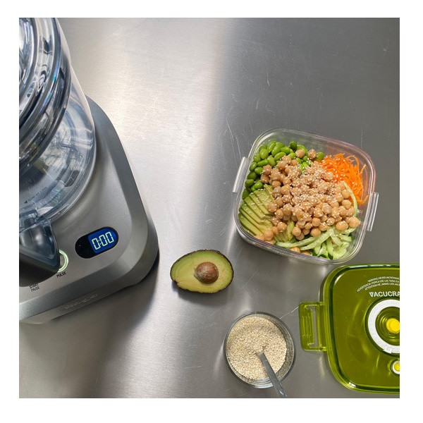 خواه آجیل را به کره تبدیل کنید یا هویج را کاملاً خرد کنید یا حتی ریز کردن و ورز دادن مواد. این دستگاه با 2 دیسک و 8 ابزار دقیق، آمادگی حرفه ای را برای هر آشپزخانه به ارمغان می آورد. دریچه تغذیه ای بلند برای برشهای طولی باعث میشود مواد نازک و بلند مثل هویج در حین اسلایس از بین نرود. دیسک برش متغیر: با 24 حالت تنظیم به شما امکان می دهد ضخامت ورقه های خود را از ضخامت 0.3 تا 0.8 میلیمتر انتخاب کنید. تایمر چند منظوره می تواند از پائین به بالا یا بالعکس شمارش کند کاسه کوچک با ظرفیت 1 لیتر برای کارهای کوچکترو آماده سازی اولیه مواد
