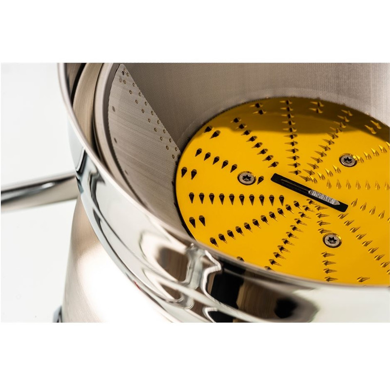 | امکانات و قابلیتها | موتور صنعتی با توان 1500 وات با قابلبت استفاده جهت مصارف زیاد و حجم بالا ،تیغه و صافی ساخت کشور ایتالیا، تیغه تیتانیوم که قابلیت آبگیری سیب، هویج، کرفس و چغندر را برای شما براحتی فراهم میکند، پارچ آبگیری با ظرفیت 2 لیتر، مخزن بزرگ تفاله با گنجایش 3.4 لیتر، دسته نگه دارنده اهرمی تمام استیل، بدنه و دهانه ورودی آبمیوه تمام استیل، دور موتور دستگاه متغیر و قابل تنظیم،قطعات جانبی قابل شستشو در ماشین ظرفشویی، مجرای بزرگ 3.5 اینچی (88mm) فوق العاده بزرگ به شما امکان می دهد میوه ها و سبزیجات کامل را بدون برش زدن آبگیری کنید، آبگیری درتنظیمات بی صدا، صدای مکانیکی را 40٪ کاهش می دهد. |
