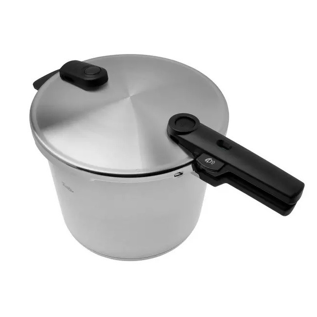 فیسلر به عنوان اولین تولیدکننده زودپز در سال 1845 توسط کارل فیلیپ فیسلر در آلمان پایه گذاری شد. «زودپز فیسلر مدل vitaquick premium گنجایش 4.5 لیتر» یکی از مدلهایی است که طراحی زیبایی دارد .زودپز فیسلر جزو یکی از امنترین زودپزهای تولیدشده در سراسر جهان است. حجم فشار تولیدشده در این زودپز 150 کیلو پاسکال بوده که در مقایسه با زودپزهای معتبر دیگر بیشتر است از این رو سرعت پخت در زودپز فیسلر بالاتر از سرعت پخت در زودپزهای دیگر است. پس میتوان نتیجه گرفت که زمان کمتری از شما گرفته خواهد شد و هرچه قدر سرعت پخت بالاتر باشد ویتامینهای مواد غذایی بیشتر حفظ خواهد شد. این زودپز با تمامی انواع گازها، مانند گازهای الکتریکی یا گازی سازگاری دارد. این دستگاه بهطور معمول بدون فشار نیز کار میکند و میتوانید در مواقع دلخواه در آن را به منظور همزدن یا اضافه کردن موادغذایی بردارید و به همه روند پختوپز احاطه داشته باشید. این زودپز از استیل 10/18 ساختهشده که بهترین و مرغوبترین کیفیت استیل را دارد. داخل زودپز مندرج شده است تا شما بدوننیاز به لیوان یا کاسه مندرج، مقدار مواد یا آب موردنظر خود را به داخل ظرف اضافه کنید. دسته آن به آسانی جدا شده و براحتی قابل شستشو میباشد، همچنین کف این زودپز فوق حرارتی است و توانایی تحمل دماهای بالا را دارد. در مجموع «زودپز فیسلر مدل vitaquick premium گنجایش 4.5 لیتر» با قیمت مناسب و کاربردهای ویژه آن، بسیار مقرون بهصرفه و اقتصادی برای مصارف خانگی است.