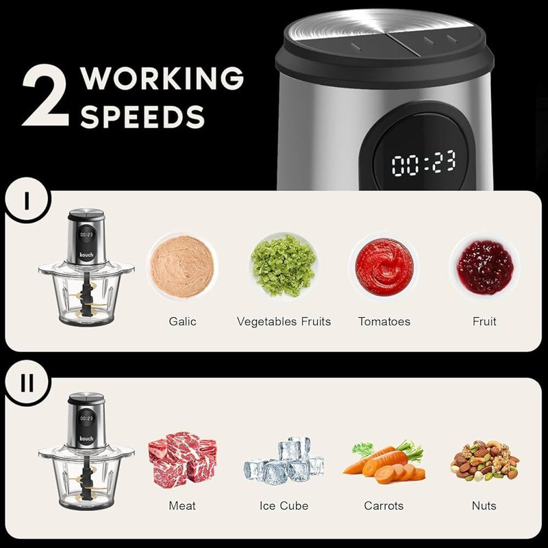 خردکن کوخ مدل ۲۰۴۷ جدید رنگ استیل که سایز ۳ لیتری هست ، کاسه پیرکس نشکن دارد ، توان موتور این خردکن ۵۰۰ وات واقعی هست که قابلیت چرخ کردن گوشت و مرغ هم دارد ، ۶ عدد تیغه تیتانیومی دارد ، ۲ سرعته هست ، دارای نمایشگر LED هست ، و همچنین ثانیه شمار هم دارد