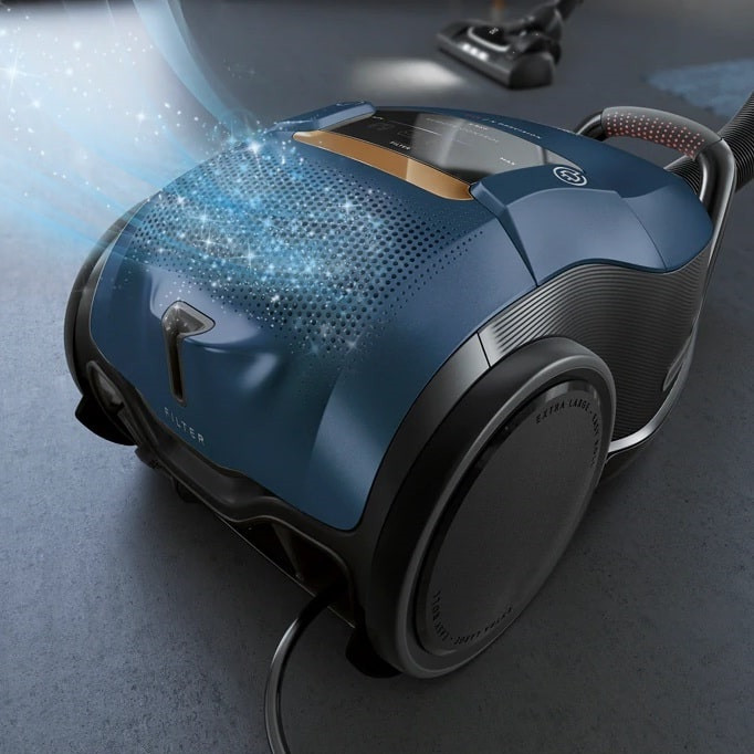 موتور ۲۲۰۰ وات این مدل، قدرت مکش بسیار بالایی را برای جمعآوری گردوغبار، زبالههای ریز و حتی موهای حیوانات خانگی فراهم میکند. این توان بالا، به دستگاه اجازه میدهد که تمیزکاری عمیقی روی فرشها، کفپوشهای سخت، سرامیک و پارکت انجام دهد. سیستم فیلتراسیون HEPA ۱۳، بهویژه برای افراد حساس به آلرژی و مشکلات تنفسی بسیار مفید است. این فیلتر میتواند ۹۹.۹۷ درصد از ذرات ریز گردوغبار را جذب کرده و از بازگشت آنها به محیط جلوگیری کند. همچنین، فیلتر PureAdvantage D۱۱ قابل شستوشو باعث کاهش هزینههای جانبی و بهبود عملکرد دستگاه در طولانیمدت میشود. برس AeroPro Parketto Pro برای نظافت کفپوشهای سخت و حساس، و برس Precision Flow با قابلیت تنظیم مکش، دقت بیشتری را در جذب گردوغبار فراهم میکنند. چراغهای جلو این برس کمک میکند که در شرایط نور ضعیف نیز نظافت مؤثری انجام شود. این برسها بهویژه برای تمیزکاری دقیق در گوشهها، شکافها و مکانهای تنگ بسیار مناسب هستند. میزان صدای ۷۸ دسیبل این جاروبرقی در رده جاروبرقیهای کمصدا قرار دارد که آن را برای استفاده در خانههای آپارتمانی و در طول روز مناسب میکند.