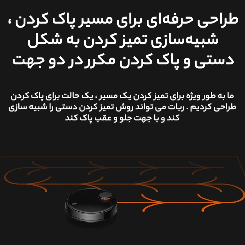 | سایر توضیحات | عملکرد 2 در 1 ، قابلیت شستشوی سطح و جارو به طور همزمان و یا هریک به تنهاییتشخیص فرش و مکش قوی تر بر روی فرشقابلیت 6 بار اسکن کامل 360 درجه در یک ثانیهعبور از موانع 2 سانتی متریمجهز به سنسور حرکت یابی LDS که تا 8 متر اطرف جارو را شناسایی می کنددارای اپلیکیشن مخصوص گوشی Mi Homeحسگرها 12 سنسورمجهز به سنسور دیوار کشی مجازی و یا تشخیص اشیاء و لبهها و پرتگاه هاامکان نام گذاری اتاق ها |