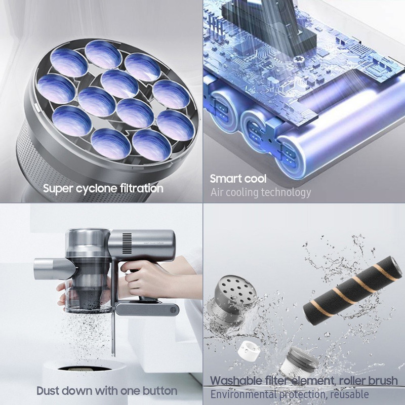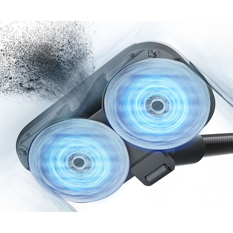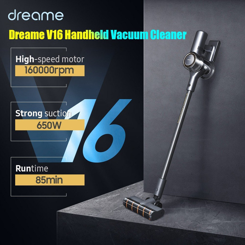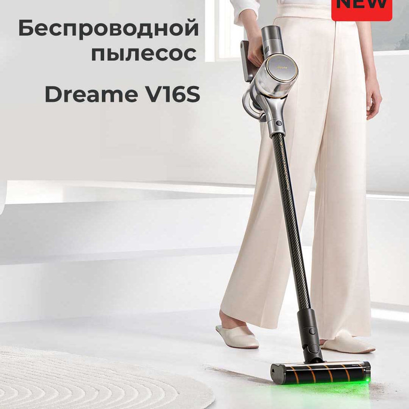 جارو شارژی Dreame V16s، در اوایل 2023 به بازار عرضه شد. موتور قدرتمند با سرعت چرخش 160,000 دور در دقیقه، دارای قدرت مکش 210AW است. این موتور قدرتمند از تکنولوژی aviation-grade motor core استفاده میکند و از نسل SPACE 6.0 است که قویترین موتور جارو در حال حاضر است. پایه اصلی جارو دارای چراغ LED است که به کمک سنسور نوری به محض رسیدن به نقاط کم نور، به طور خودکار روشن میشود تا هیچ نقطهای جا نماند. برس چرخان در این پایه از موهای نرم و سخت به طور ترکیبی استفاده میکند تا هر نوع ذره ای را از تمام نقاط و درزها به طور کامل پاک کند. V16s دارای یک سنسور هوشمند تشخیص میزان آلودگی و تنظیم خودکار قدرت مکش براساس شرایط سطح است. V16s، قابلیت زمین شویی و کفسابی دارد. این قابلیت به صورت چرخش دو پد تی کشی با اعمال فشار و سرعت چرخش 116 دور در دقیقه است. پدهای تی کشی از جنس میکروفایبر آنتی باکتریال است که آلودگی را به زمین منتقل نمیکند. نیاز به نظافت دیرتری دارد، رد جا نمی گذارد، طول عمر بالایی دارد، بوی بد در اثر رطوبت نمیگیرد و قارچ و باکتری روی آن رشد نمیکند. میزان آبپاشی در حین تی کشی را میتوانید از سه سطح مختلف انتخاب کنید، تی کشی خشک، نیمه مرطوب و کاملا مرطوب که تمام نیازهای روزانه شما را برطرف میکند.طراحی پایه به شکلی است که در حین تی کشی تمام لبه های دیوار را کامل تمیز میکند و هیچ نقطه ای دور از دسترس نخواهد بود. صفحه نمایش LED، میزان باتری باقیمانده، قدرت مکش، حالت کار، هشدار گیر کردن اجسام در مجرای هوا، هشدار نظافت برس چرخان و هشدار نظافت فیلتر هوا را با شما نشان میدهد. دکمه روی نمایشگر امکان تغییر حالت به شما میدهد. با زدن دکمه قفل میتوانید بدون نگه داشتن دکمه ماشه مانند و بدون توقف جارو بزنید. باتری شارژی جارو شارژی شامل 7 باتری 2700 میلی آمپری است. با یکبار شارژ در سه حالت از کم به زیاد 85، 30 و 8 دقیقه شارژدهی خواهد داشت. در کمترین حالت مکش میتوانید فضایی تا 200 متر مربع را نظافت کنید. در کنار باتریها هم یک سیستم خنک کننده قرار دارد تا در زمان استفاده زیاد و مداوم در اثر گرما، کارکرد موتور متوقف نشود. فیلتراسیون این جارو از نوع 12cone cyclone separation system است. فیلتر دستگاه درواقع شامل 5 لایه فیلتر است. این فیلتر قادر به نظافت 99.94درصد ذرات معلق است.