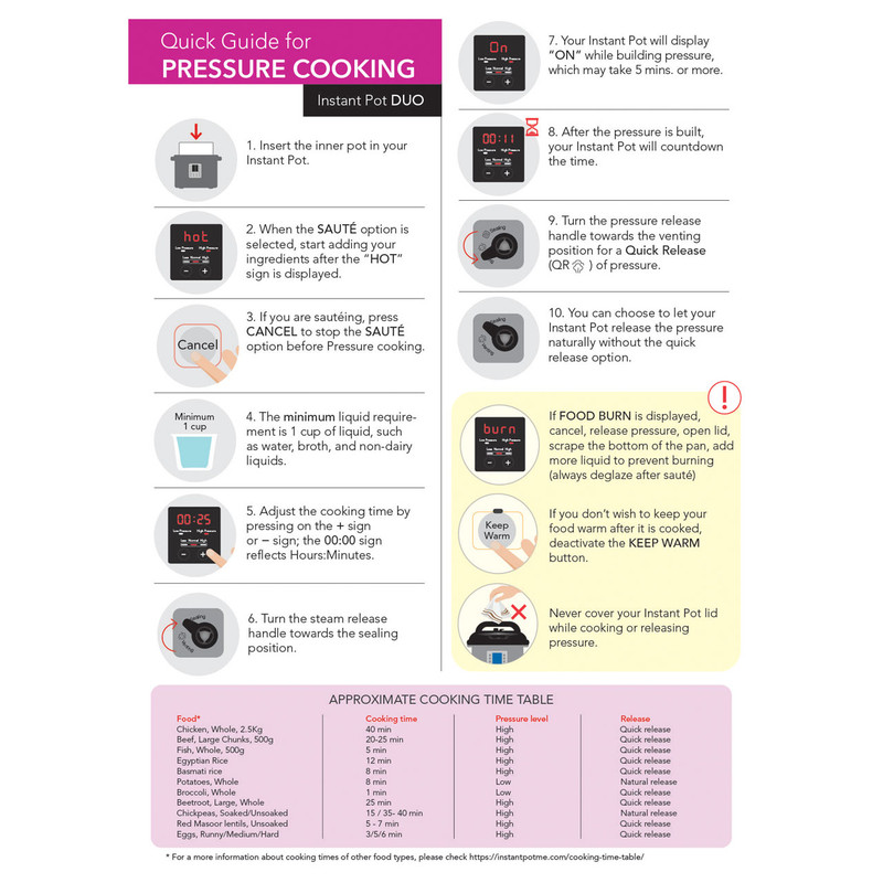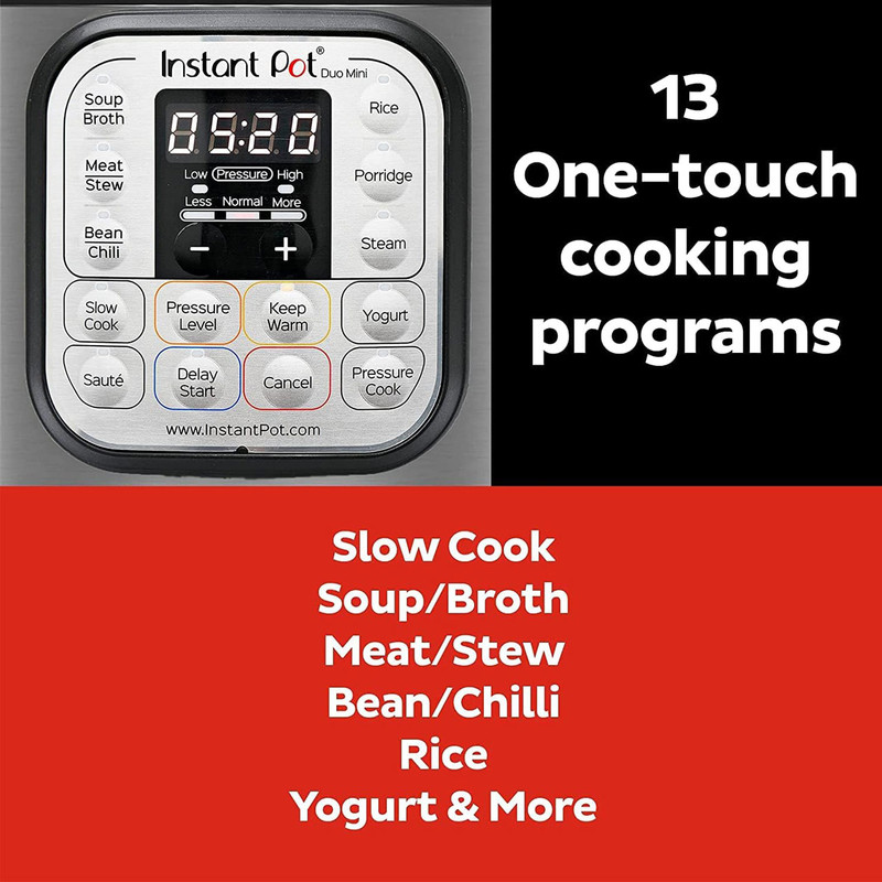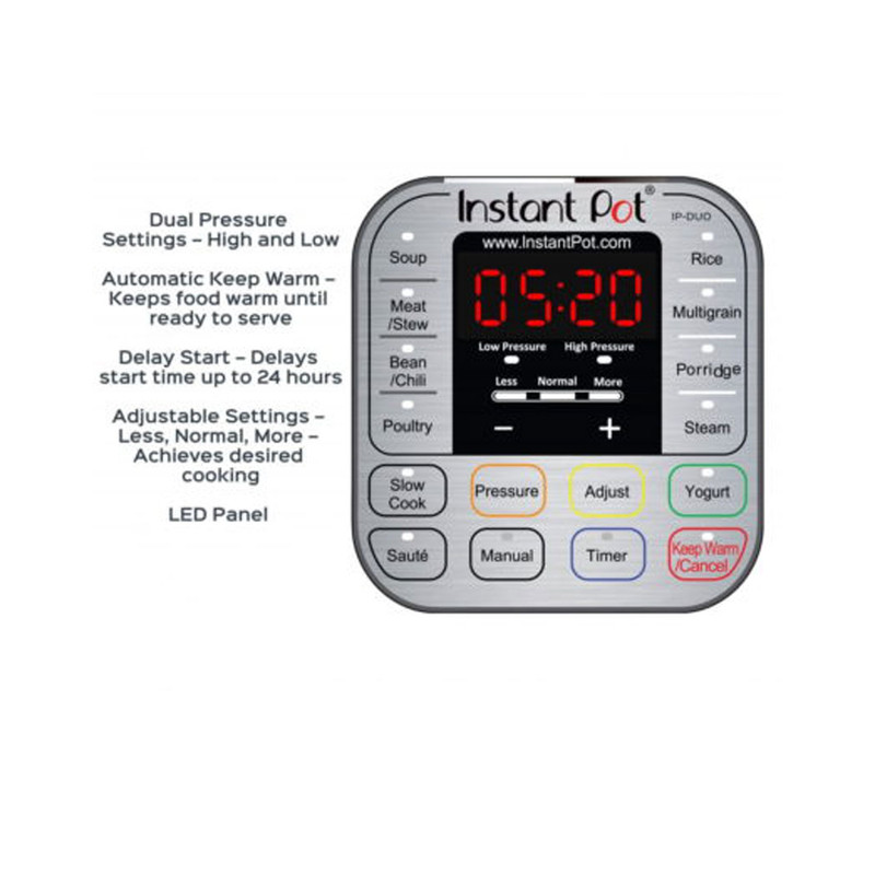 | سایر مشخصات | ظرفیت 8 لیتر / برنامه های پیش فرض ( Soup, Meat/Stew, Bean/Chili, Poultry, Sauté/Simmer, Rice, Multigrain, Porridge, Steam, Slow Cook, Keep Warm, Yogurt, Manual, and Pressure Cook and Delay Start ) / سوپ، گوشت/خورش، لوبیا/فلفل، مرغ، تفت دادن/دم کردن، برنج، چند دانه، فرنی، بخارپز، آرام پز، گرم نگه داشتن، ماست،برنامه دستی و پخت تحت فشار(زودپز) و پخت با تاخیر / کشور مبدا برند کانادا |