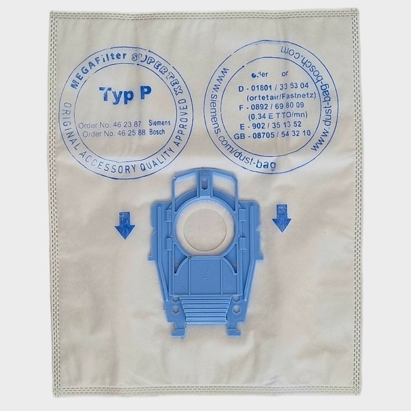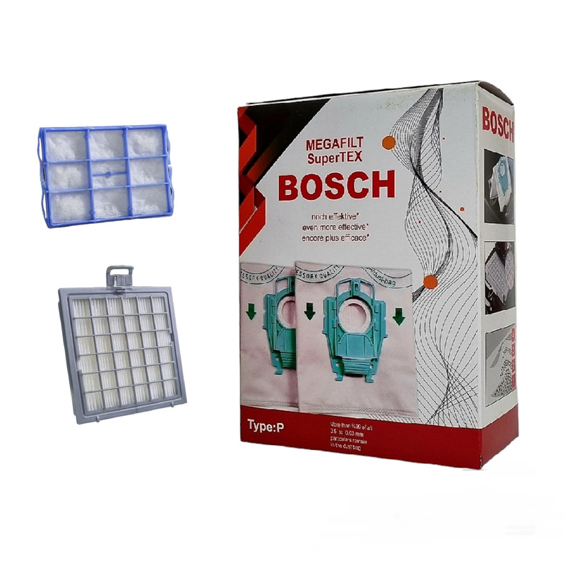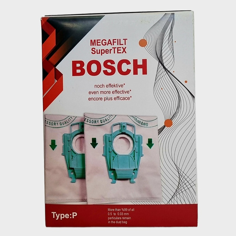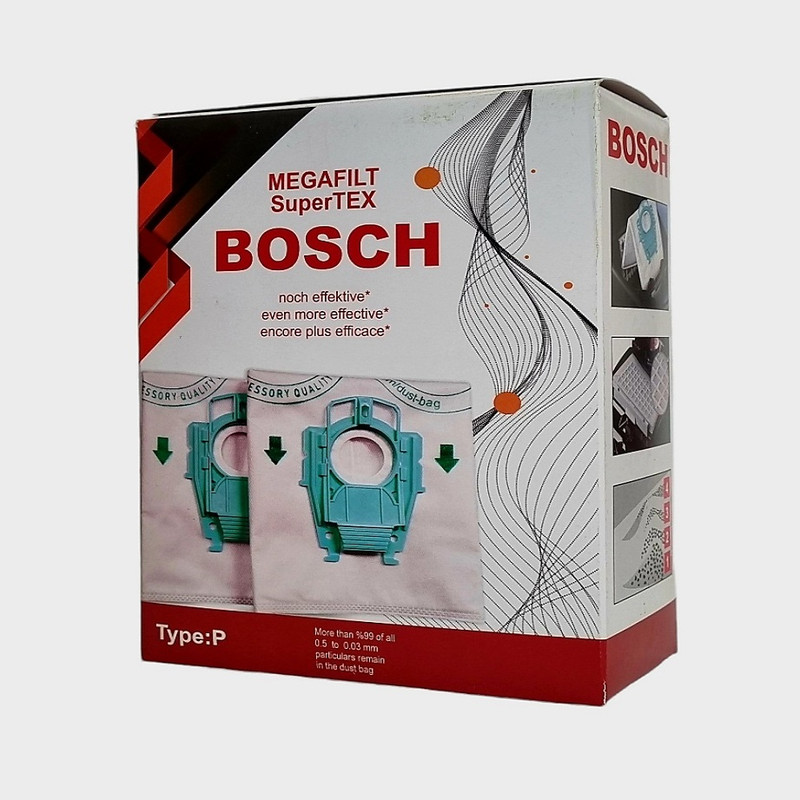 کیسه جاروبرقی یکبارمصرف بوش با 4 لایه هپا در هر طرف تهیه شده که بااستفاده از فناوری اولتراسونیک به یکدیگر متصل شدهاند. بافت منسجم این کیسه و عدم وجود شکاف در محل اتصال از ورود ذرات به موتور و درنهایت هوای داخلی اتاق ممانعت کرده و موجب افزایش عمر دستگاه، مصرف کمتر انرژی و بهبود قدرت مکش میشود. این محصول مناسب جاروبرقیهای بوش ارگوماکس و زیمنس و همچنین برخی جاروبرقی های پارس خزر میباشد و در بستهبندیهای 5 عددی به همراه یک عدد فیلتر ورودی از جنس نمد با بافت متراکم که بر روی یک فریم آبی پرس شده و از ورود گرد و غبار ریز به موتور جلوگیری میکند و باعث سلامت و طول عمر موتور میشود; همچنین یک عدد فیلتر هپا خروجی جاروبرقی که باعث ممانعت ورود خاک و گردوغبار داخل موتور به محیط بیرون میشود و در نتیجه از ایجاد حساسیت جلوگیری میکند عرضه میشود. لازم به ذکر است که تمامی فیلتر ها هر شش ماه یکبار یا پس از اتمام هر پنج پاکت باید تعویض گردد که این امر باعث طول عمر موتور میشود.