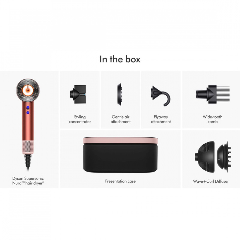 ✨ تیکشی/عملکرد جانبی: دارای پنج سری کاربردی شامل دیفیوزر Wave+Curl برای حالتدهی طبیعی موهای فر، سری Flyaway برای حذف وز مو، نازل متمرکزکننده، سری Gentle Air و صافکننده.
