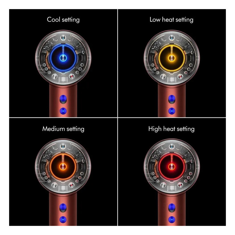 ✨ قدرت مکش/توان: مجهز به موتور دیجیتال Dyson V9 با سرعت چرخش ۱۱۰٬۰۰۰ دور در دقیقه، تولید جریان هوای متمرکز و پرقدرت برای خشککردن سریع مو بدون نیاز به حرارت بالا.