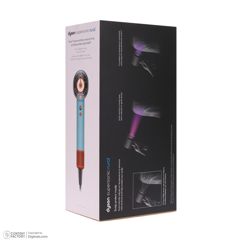 سشوار دایسون مدل Supersonic hd16 یکی از محصولات پیشرفته این برند معتبر است که نشاندهنده ترکیب طراحی زیبا و فناوریهای مدرن محسوب میشود. برند دایسون، یکی از مطرحترین و بهترین تولیدکنندگان لوازم برقی در جهان، همواره بر کیفیت، نوآوری و ظاهر جذاب محصولات خود تمرکز دارد. این شرکت با تولید سشوارهای قدرتمند و با کیفیت، جایگاه ویژهای در بازار جهانی پیدا کرده است و مدل Supersonic به عنوان نمونهای از این تلاشها، توجه بسیاری را جلب کرده است. این سشوار همانند سایر محصولات این برند، از فناوریهای هوشمند بهرهمند است که به حفظ سلامت مو کمک میکند. این دستگاه مجهز به سنسور ToF است که فاصله با سر کاربر را تشخیص میدهد و در نتیجه، دما را به صورت خودکار تنظیم میکند تا از آسیب رسیدن به موهای حساس جلوگیری شود. همچنین، این سشوار دارای حالت آماده به کار اتوماتیک است که در صورت قرار گرفتن روی میز یا عدم استفاده، دستگاه به طور خودکار خاموش میشود، این ویژگی بهرهوری و ایمنی کاربری را بالا میبرد. سریهای چندگانه این سشوار، امکان حالت دادن و خشک کردن موهای مختلف را فراهم میکند؛ از جمله سریهای متمرکز کننده باد، پخشکننده باد، ملایمکننده و شانهدار. علاوه بر این، چهار درجه گرما و حالت باد سرد در HD16 به کاربر امکان کنترل کامل بر فرآیند خشک کردن و حالت دادن را میدهد، بدون اینکه به مو آسیب برساند. موتور دیجیتال ۱۳ پره با دور موتور ۱۱۰ هزار دور در دقیقه، این دستگاه را به یک ابزار حرفهای خانگی تبدیل کرده است که قدرت و کارایی بالا را با مصرف کم انرژی عرضه میکند. در مجموع، سشوار دایسون مدل Supersonic hd16 با طراحی مدرن، فناوریهای هوشمند و امکانات متنوع، گزینهای عالی برای افرادی است که به دنبال یک دستگاه قدرتمند، ایمن و با ظاهری جذاب برای خشککردن و حالت دادن به موهای خود هستند.