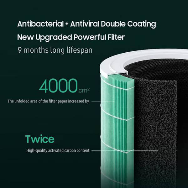 فیلتر به کار رفته در این دستگاه به صورت استوانهای طراحی شده و عملکردی 360 درجهای دارد. سیستم فیلتر Smart Air Purifier 4 Pro از دو فیلتر عملکرد بالای شیائومی با طراحی زیگ زاگی و فیلتر کربن فعال تشکیل شده است. فیلتر مخصوص شیائومی مساحتی معادل 24 هزار سانتیمتر مربعی را پوشش میدهد و فیلتر کربن فعال حاوی 650 هزار میلیگرم کربن فعال است. این سیستم فیلتر قادر است تا 99.97 درصد از ذرات آلاینده به کوچکی 0.3 میکرومتر را از هوای ورودی حذف کند. موی حیوانات، ذرات آلرژن، گرد و خاک، دود سیگار، شوره و الیاف پنبه موجود در هوای محیط به راحتی توسط این سیستم جذب میشود.