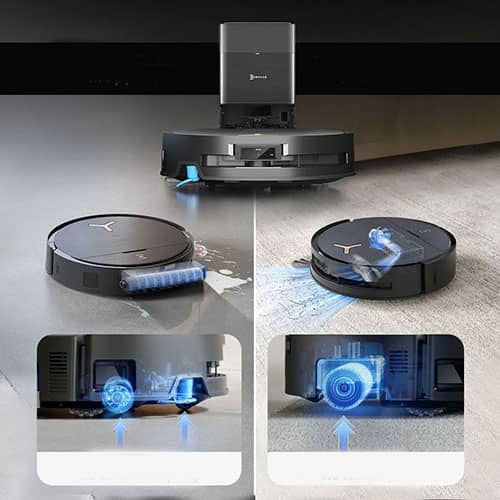 ✨ طراحی: بدنه مقاوم با ارتفاع کمتر از ۱۰ سانتیمتر، مناسب برای عبور از زیر مبل و تخت، همراه با طراحی شیک و مدرن.