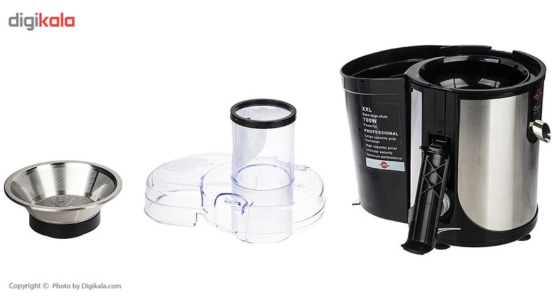 این آبمیوهگیری 500 وات قدرت دارد. موتور این دستگاه دوسرعته و آنقدر قدرتمند است که میتواند میوههای سفت را هم آبگیری کند. با پیچ تنظیم سرعت موتور میتوان سرعت پایین را برای آبگرفتن میوههای نرم و سرعت بالای دستگاه را برای آبگیری میوههای سخت در نظر گرفت. این آبمیوهگیری دو عدد میکرو سوئیچ ایمنی دارد. بسکت و تیغهی آبمیوهگیری از جنس استیل ضدزنگ بوده و کیفیت ساخت آنها خوب است. قطر دهانهی ورودی این مدل آبمیوهگیری 75 میلیمتر است؛ یعنی بهقدر کافی بزرگ هست که بتوان میوههای درشتتر مثل سیب را بهصورت کامل و بدون نیاز به برش در آن انداخت. بهاینترتیب نیازی به ریزکردن میوهها نیست. تفالهی میوه به مخزن تفاله منتقل میشود و آبمیوه از سمت دیگر خارج میشود. آبمیوهگیری پارس خزر مدل تایگر یک پارچ جمعآوری آبمیوه هم دارد تا آبمیوه بدون اینکه به زمین یا روی میز بریزد، به این پارچ منتقل شود. این پارچ طوری طراحی شده است که به خروجی دستگاه متصل میشود. بعد از اینکه آب میوهها را گرفتید، میتوانید پارچ مدرج مخصوص را در یخچال بگذارید تا آبمیوه خنک شود. ظرفیت این پارچ یک لیتر است.