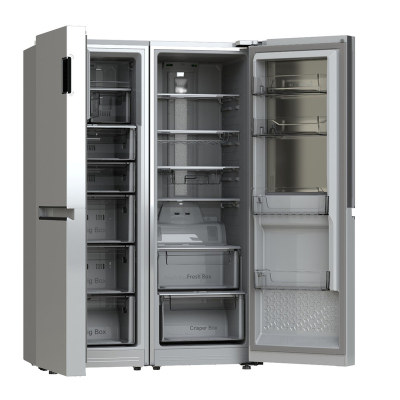 با مجموع گنجایش ۶۰۶ لیتر، MasterPro NRD15 S فضای ذخیرهسازی فوقالعادهای را برای پاسخگویی به نیازهای خانوادههای پرجمعیت یا افرادی که به خرید عمده و برنامهریزی غذایی اهمیت میدهند، فراهم میکند. بخش یخچال با ظرفیت سخاوتمندانهی ۳۳۵ لیتر، دارای ۵ طبقهی شیشهای مقاوم، ۴ قفسهی جادار روی درب برای انواع بطریها و ظروف کوچک، و ۳ کشوی بزرگ و شفاف برای نگهداری بهینهی میوهها و سبزیجات با حفظ رطوبت و تازگی ایدهآل است. بخش فریزر هم با ظرفیت قابل توجه ۲۷۱ لیتر، با طراحی بسیار کاربردی شامل ۷ سطح طبقاتی و ۷ کشوی عمیق و شفاف، امکان دستهبندی دقیق و انجماد انواع گوشت، مرغ، ماهی، سبزیجات و سایر مواد غذایی را به بهترین شکل ممکن فراهم میآورد و دسترسی به آنها را بسیار آسان میکند. ۲ قفسه هم روی درب فریزر برای اقلام کوچکتر و پرمصرفتر تعبیه شده است. نورپردازی LED داخلی در هر دو بخش یخچال و فریزر، روشنایی یکنواخت و کاملی را ایجاد میکند.