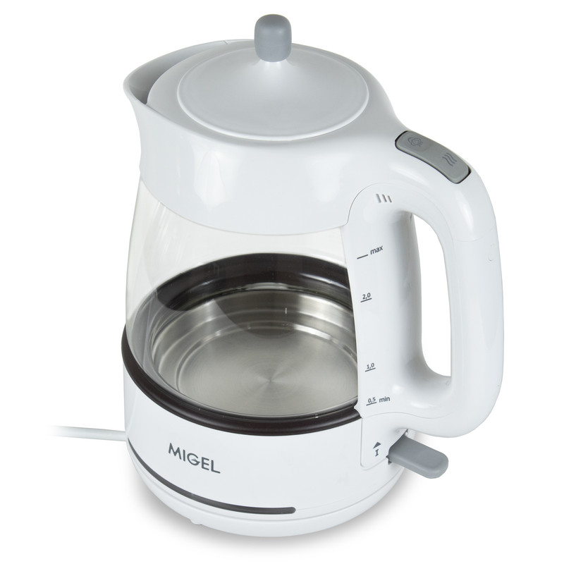 از ویژگیهای بسیار مهم کتری و قوریهای برقی توان مصرفی دستگاه است. زمانی که توان مصرفی دستگاه زیاد باشد، دستگاه با سرعت بیشتری به عمل میآید و شما میتوانید فوری به یک فنچان چای داغ دست پیدا کنید. چای ساز میگل مدل GTS 070 دارای حداکثر توان مصرفی 1800 وات است. یعنی در یک چشم برهم زدن آب شما جوش میآید. این مدل به صورت کتری و قوری روی هم ساخته شده است. نحوه گرم شدن آن به واسطه یک هیتر برقی کوچک انجام میشود که کتری روی آن قرار میگیرد و گرما را دریافت میکند. سپس باید قوری را روی کتری سوار کرد تا چای دم بیاید. از ویژگیهای این مدل آن است که شما قابلیت 360درجه چرخش را در این مدل دارید و میتوانید در هر کجای آشپزخانه این چای ساز برقی را قرار دهید. کتری شیشهای دستگاه دارای ظرفیت 2.5 لیتر و قوری دستگاه نیز که شیشهای بوده دارای یک لیتر ظرفیت است. همچنین قوری شیشهای این مدل، تفاله گیر دارد که در این حالت دیگر نیازی به صافی نخواهید داشت و ظرفیت آن 0.7 لیتر است.